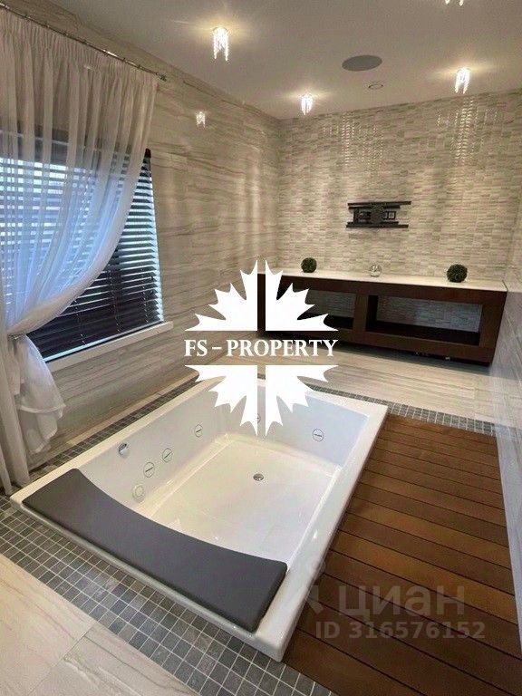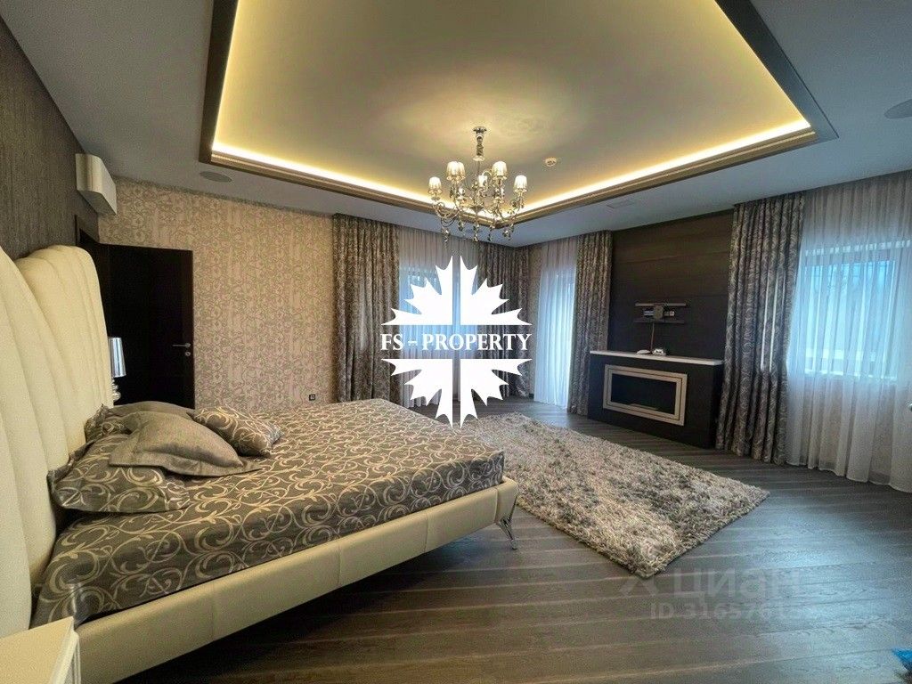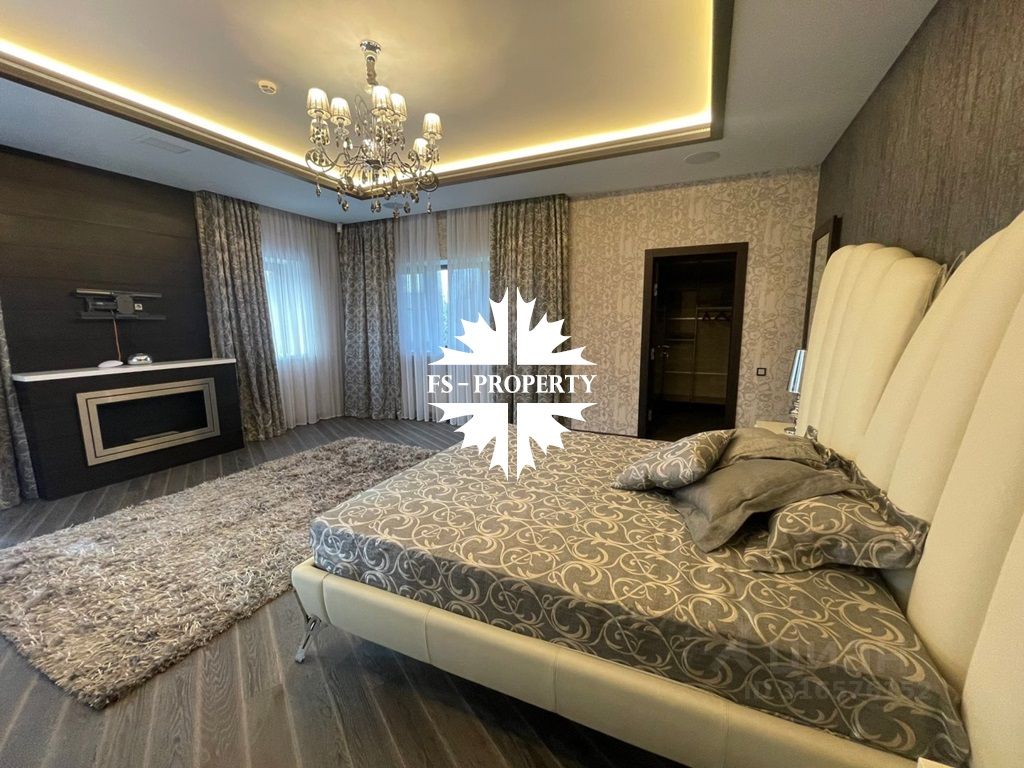 Расположен на тихой улице. Собственный пруд на территории участка площадью 0,552 га. 6 спален, бассейн, мебель и техника. Дом готов к проживанию.