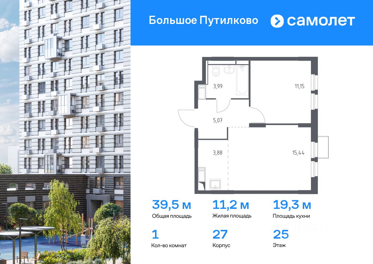 Предлагается 1-комнатная квартира комфорт-класса 39,53 кв.м в корпусе 27 на 25 этаже, в ЖК ''Большое Путилково'' Квартира с чистовой отделкой. Доступность дополнительных опций уточняйте у застройщика.