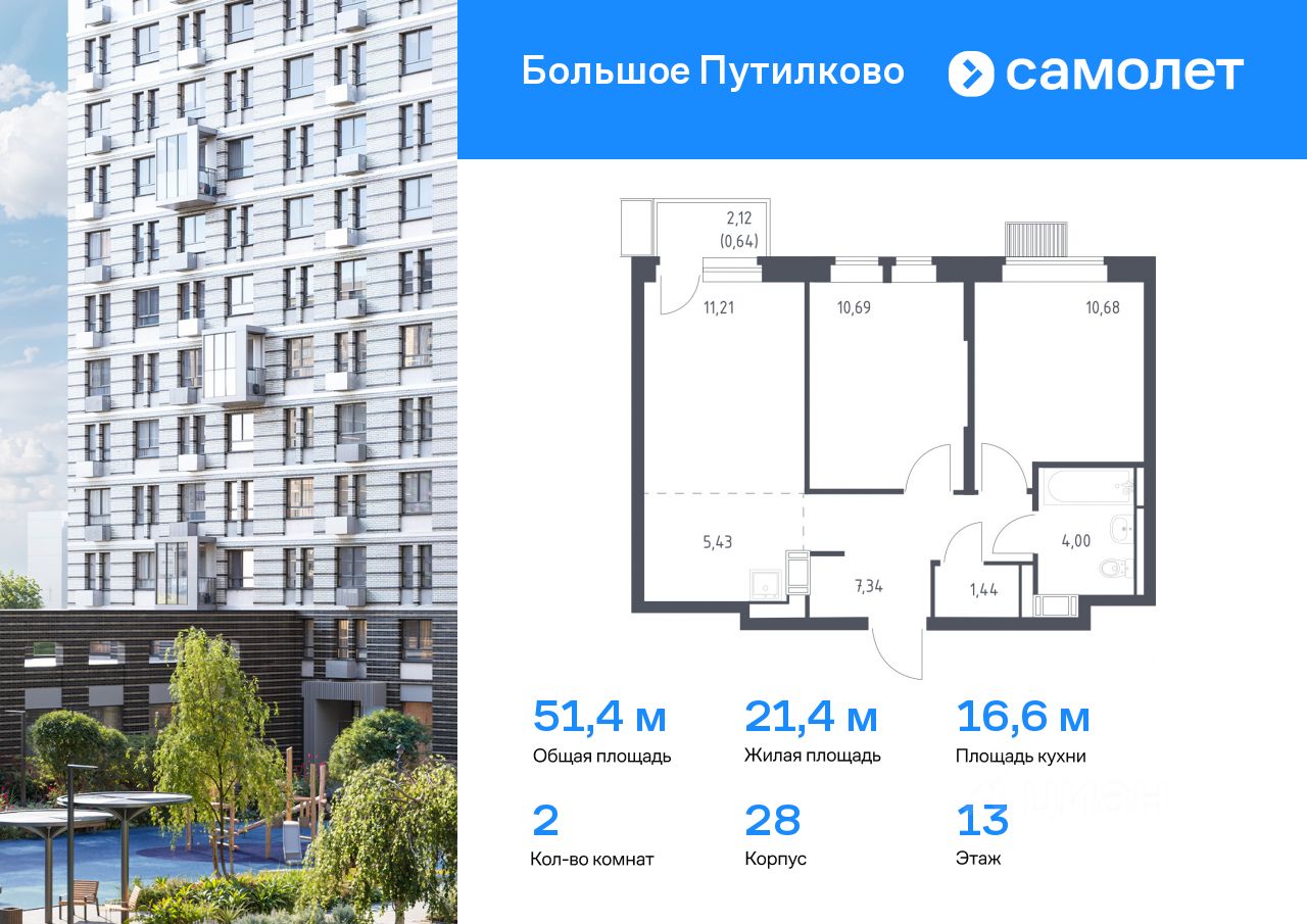 Предлагается 2-комнатная квартира комфорт-класса 51,43 кв.м в корпусе 28 на 13 этаже, в ЖК ''Большое Путилково'' Квартира без отделки. Доступность опции ''отделка'' и возможность комплектации мебелью и декором уточняйте у застройщика.