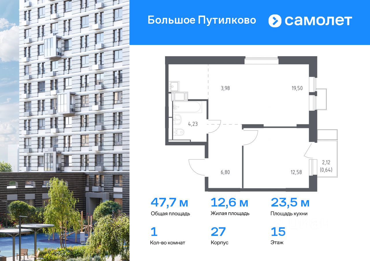Предлагается 1-комнатная квартира комфорт-класса 47,73 кв.м в корпусе 27 на 15 этаже, в ЖК ''Большое Путилково'' Квартира с чистовой отделкой. Доступность дополнительных опций уточняйте у застройщика.