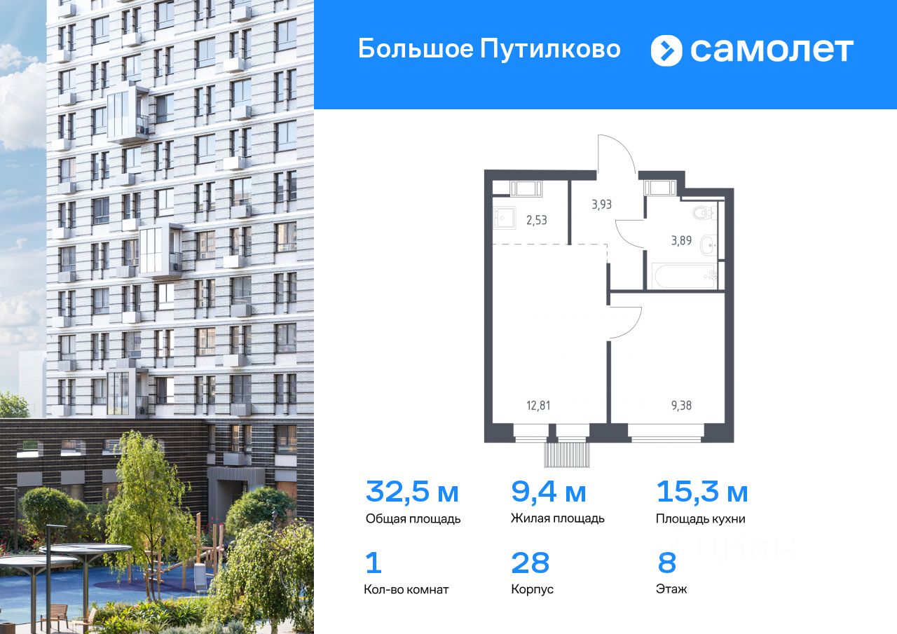 Предлагается 1-комнатная квартира комфорт-класса 32,54 кв.м в корпусе 28 на 8 этаже, в ЖК ''Большое Путилково'' Квартира с чистовой отделкой. Доступность дополнительных опций уточняйте у застройщика.