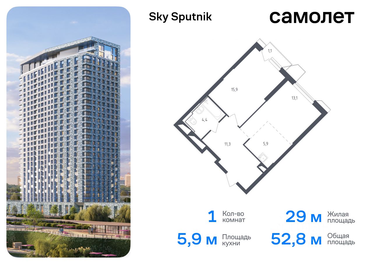 Предлагаются 1-комнатные апартаменты бизнес-класса 52,84 кв.м в корпусе 21 на 10 этаже, в Sky Sputnik Апартаменты с чистовой отделкой. Доступность дополнительных опций уточняйте у застройщика.