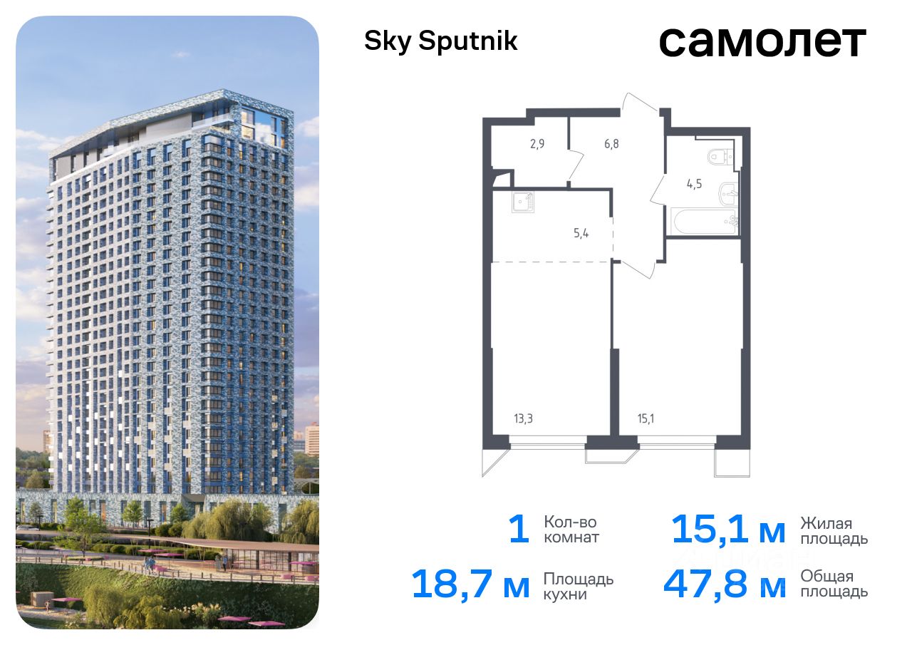 Предлагаются 1-комнатные апартаменты бизнес-класса 47,83 кв.м в корпусе 21 на 11 этаже, в Sky Sputnik Апартаменты с чистовой отделкой. Доступность дополнительных опций уточняйте у застройщика.