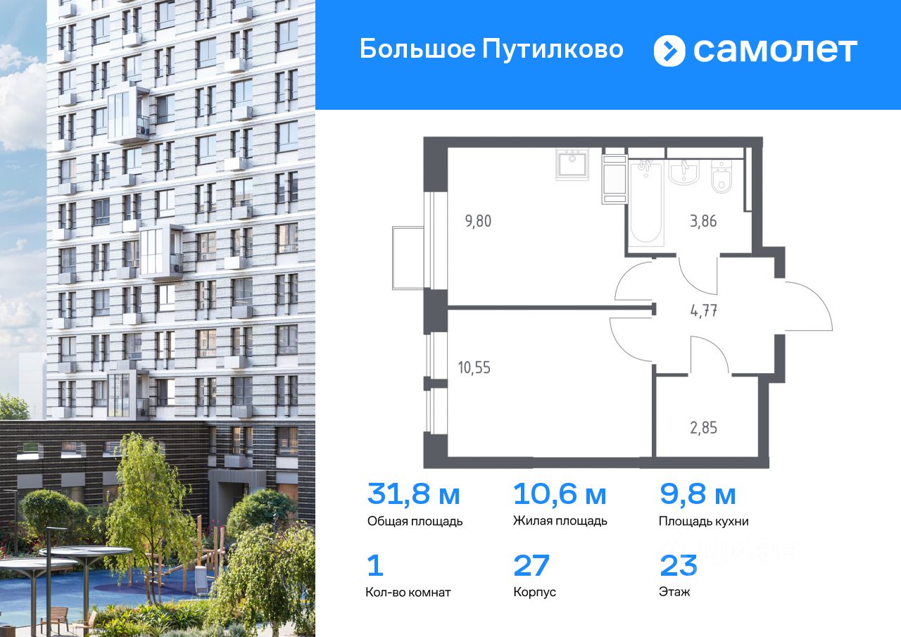Предлагается 1-комнатная квартира комфорт-класса 31,83 кв.м в корпусе 27 на 23 этаже, в ЖК ''Большое Путилково'' Квартира с чистовой отделкой. Доступность дополнительных опций уточняйте у застройщика.