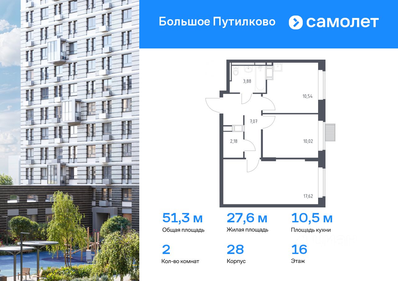 Предлагается 2-комнатная квартира комфорт-класса 51,31 кв.м в корпусе 28 на 16 этаже, в ЖК ''Большое Путилково'' Квартира без отделки. Доступность опции ''отделка'' и возможность комплектации мебелью и декором уточняйте у застройщика.