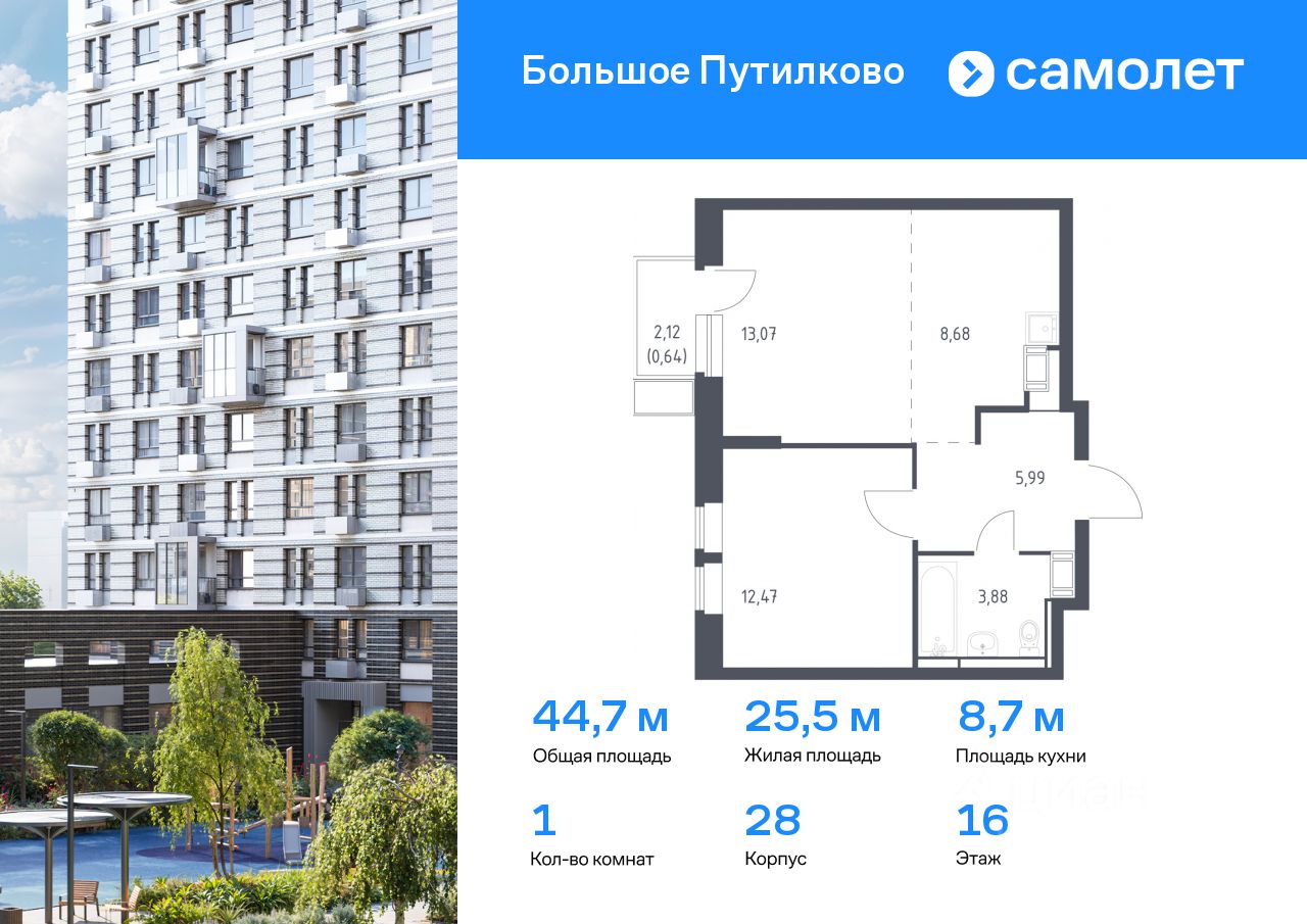 Предлагается 1-комнатная квартира комфорт-класса 44,73 кв.м в корпусе 28 на 16 этаже, в ЖК ''Большое Путилково'' Квартира без отделки. Доступность опции ''отделка'' и возможность комплектации мебелью и декором уточняйте у застройщика.