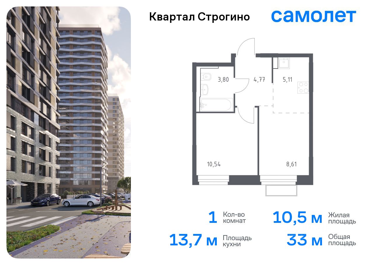 Предлагается 1-комнатная квартира комфорт-класса 33 кв.м в корпусе 2 на 18 этаже, в ЖК ''Квартал Строгино'' Квартира с чистовой отделкой. Доступность дополнительных опций уточняйте у застройщика.