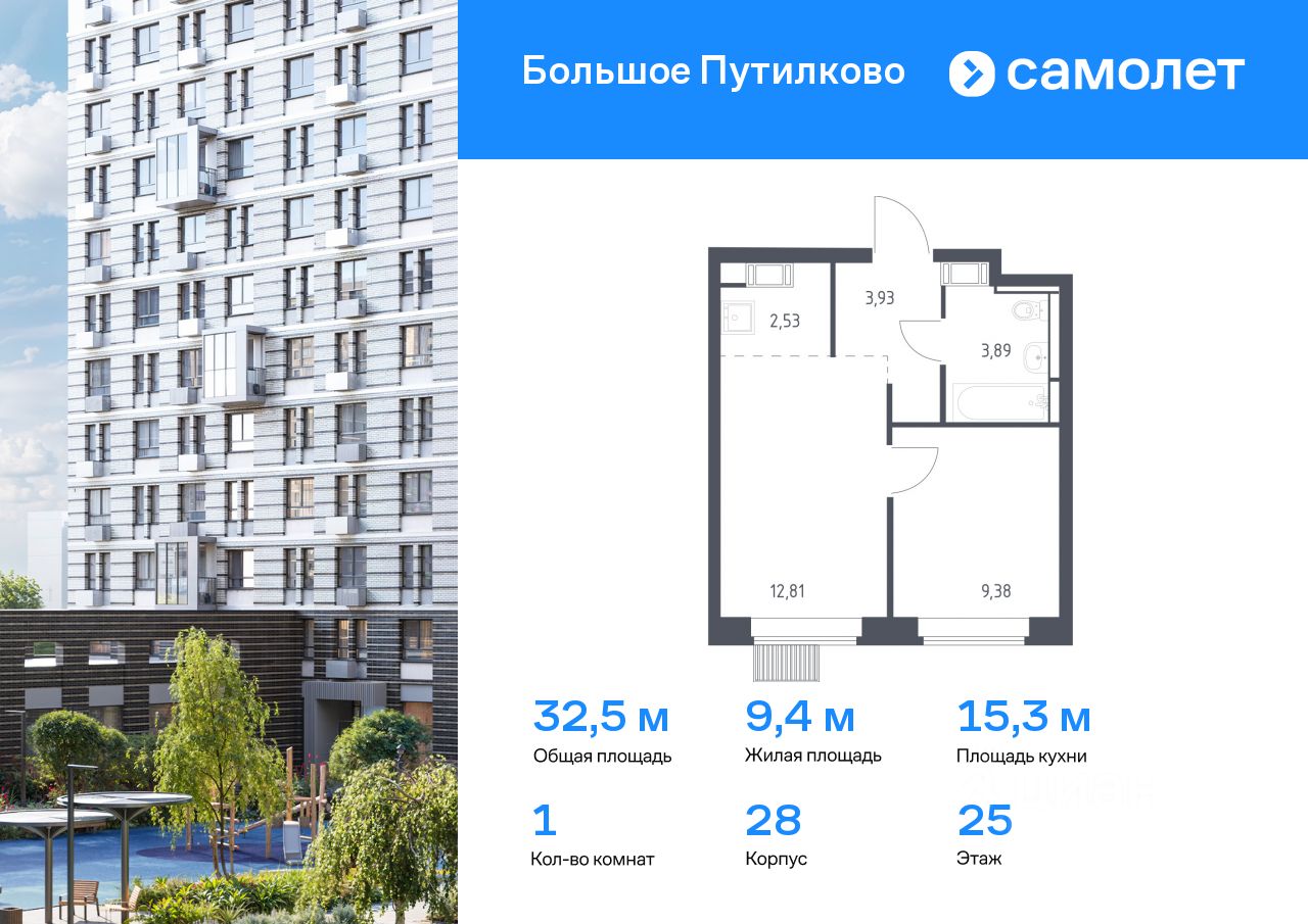 Предлагается 1-комнатная квартира комфорт-класса 32,54 кв.м в корпусе 28 на 25 этаже, в ЖК ''Большое Путилково'' Квартира с чистовой отделкой. Доступность дополнительных опций уточняйте у застройщика.