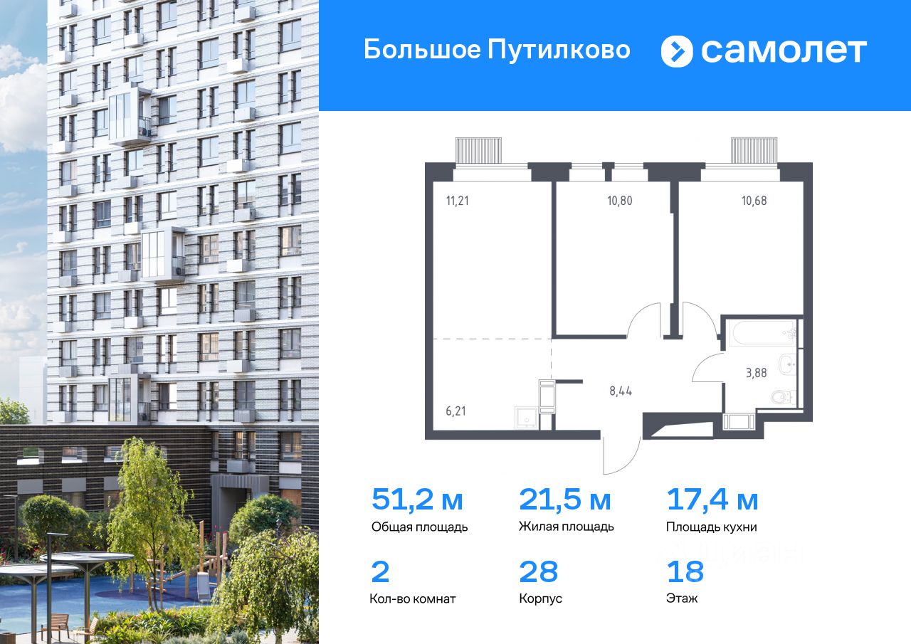 Предлагается 2-комнатная квартира комфорт-класса 51,22 кв.м в корпусе 28 на 18 этаже, в ЖК ''Большое Путилково'' Квартира с чистовой отделкой. Доступность дополнительных опций уточняйте у застройщика.