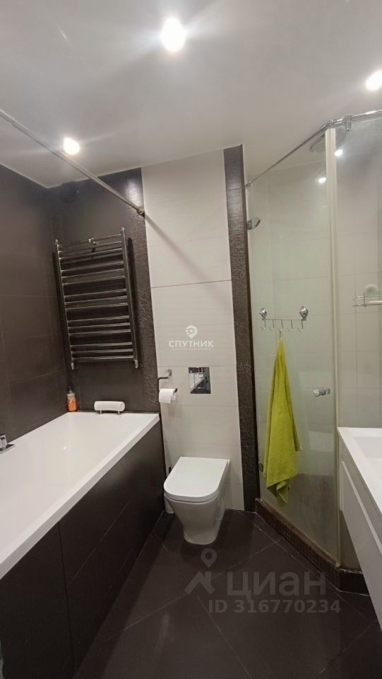 В квартире три встроенных функциональных шкафа (возле входной двери, в коридоре, в спальне). Полы в коридоре, кухне-гостиной, санузле отделан керамогранитом - везде теплый пол с регуляторами. Полы в жилых комнатах - темно-коричневый паркет.