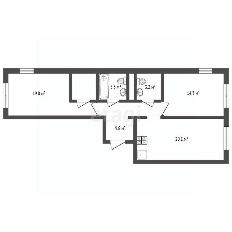 О квартире - Общая площадь 70.5 м2 Жилая 34.3 м2,(20,15-14,17) Кухня 20 м2 Расположена на 13/25 монолитного дома (2020 года постройки.).