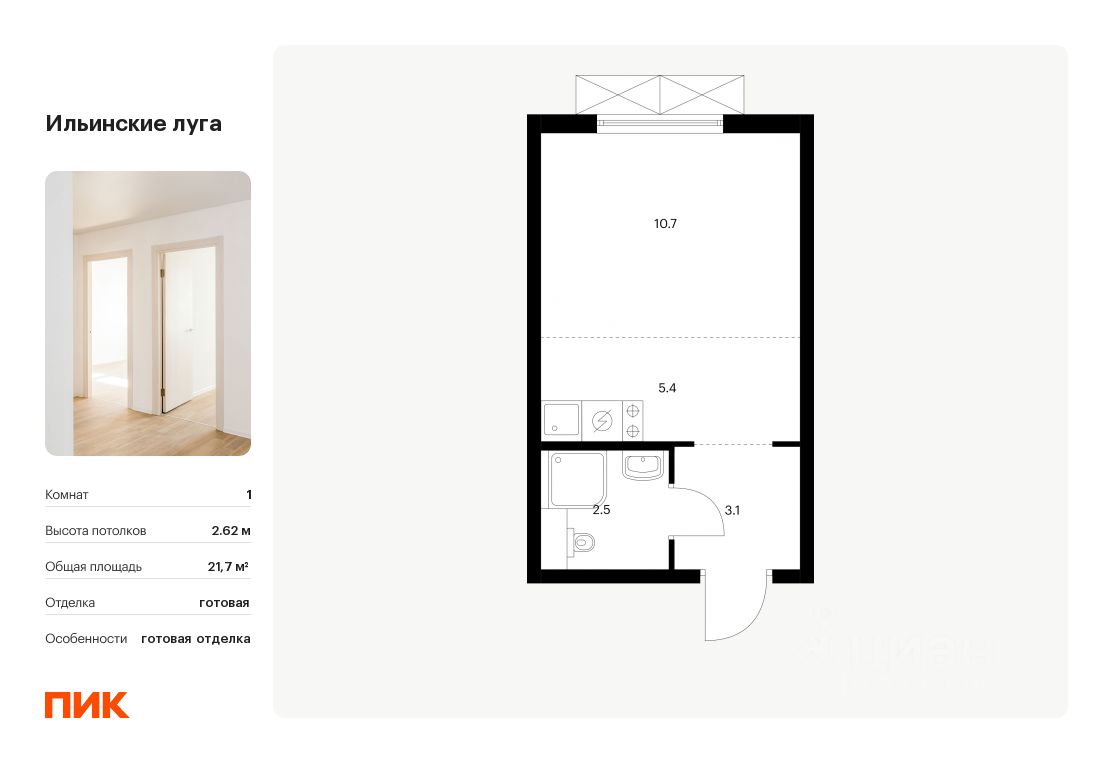 Продаётся квартира-студия площадью 21,7 кв.м на 4 этаже 9 этажного дома (Корпус 2.9, Секция 4) проекта ПИК Ильинские луга. Светлый просторный подъезд на уровне земли, функциональная планировка, большие окна, c отделкой.