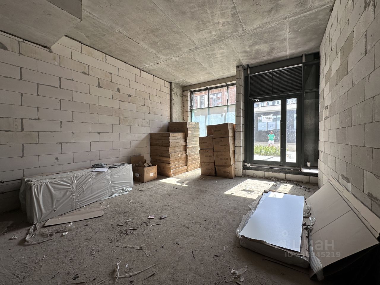 Помещение 16 в стилобате 3, первая линия, секция 1, отдельный вход, витринное окно. Планировка открытая, высота потолков 4 м, эл. мощность - 13 кВт.
