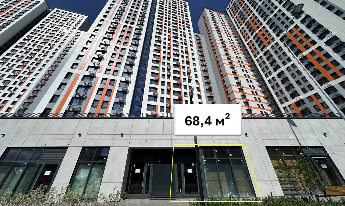 Помещение 16 в стилобате 3, первая линия, секция 1, отдельный вход, витринное окно. Планировка открытая, высота потолков 4 м, эл. мощность - 13 кВт.