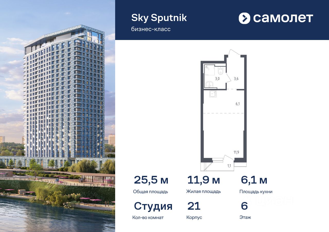 Предлагаются апартаменты студия бизнес-класса 25,54 кв.м в корпусе 21 на 6 этаже, в Sky Sputnik Апартаменты с чистовой отделкой. Доступность дополнительных опций уточняйте у застройщика.