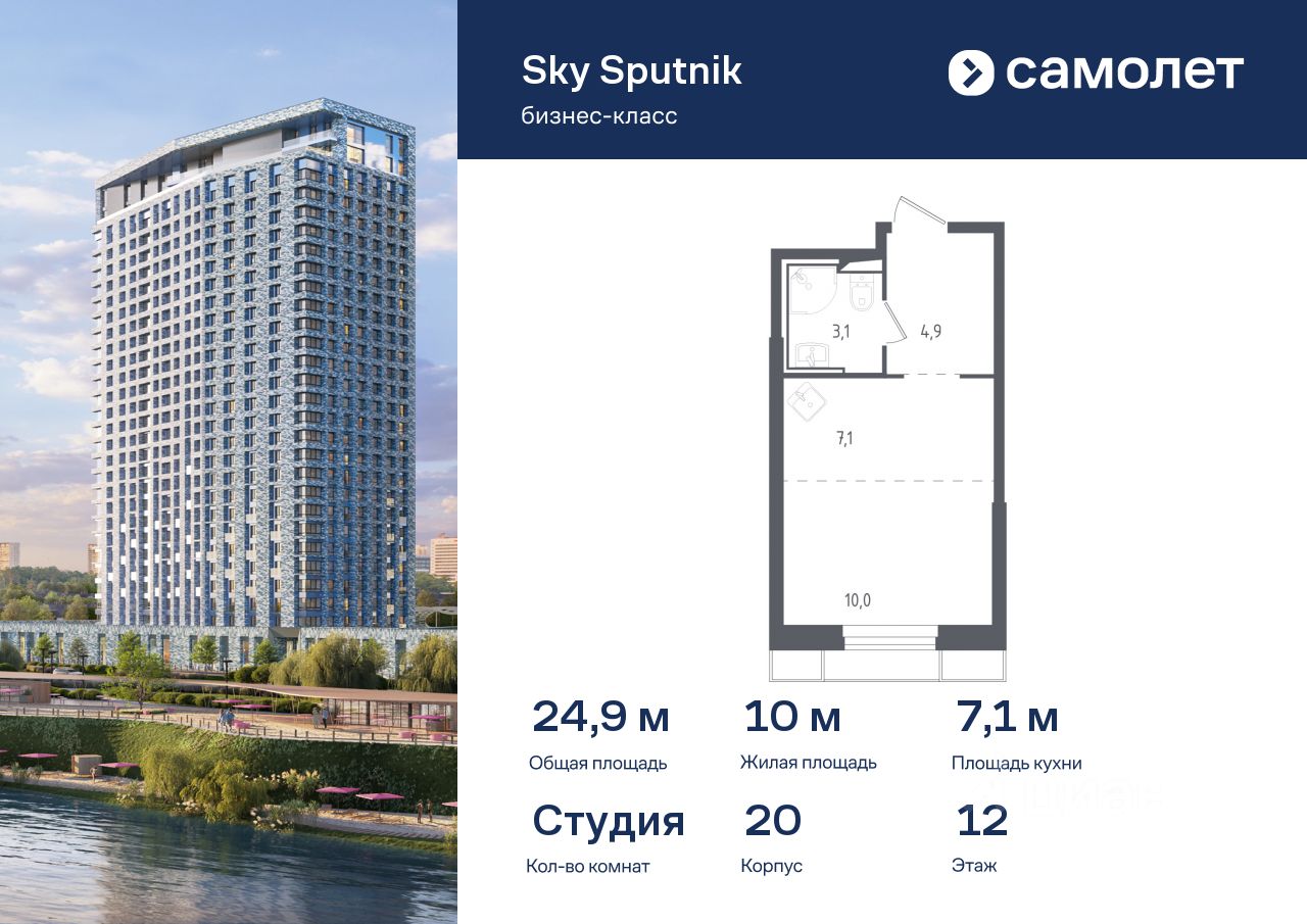 Предлагаются апартаменты студия бизнес-класса 24,88 кв.м в корпусе 20 на 12 этаже, в Sky Sputnik Апартаменты с предчистовой отделкой. Доступность дополнительных опций уточняйте у застройщика.