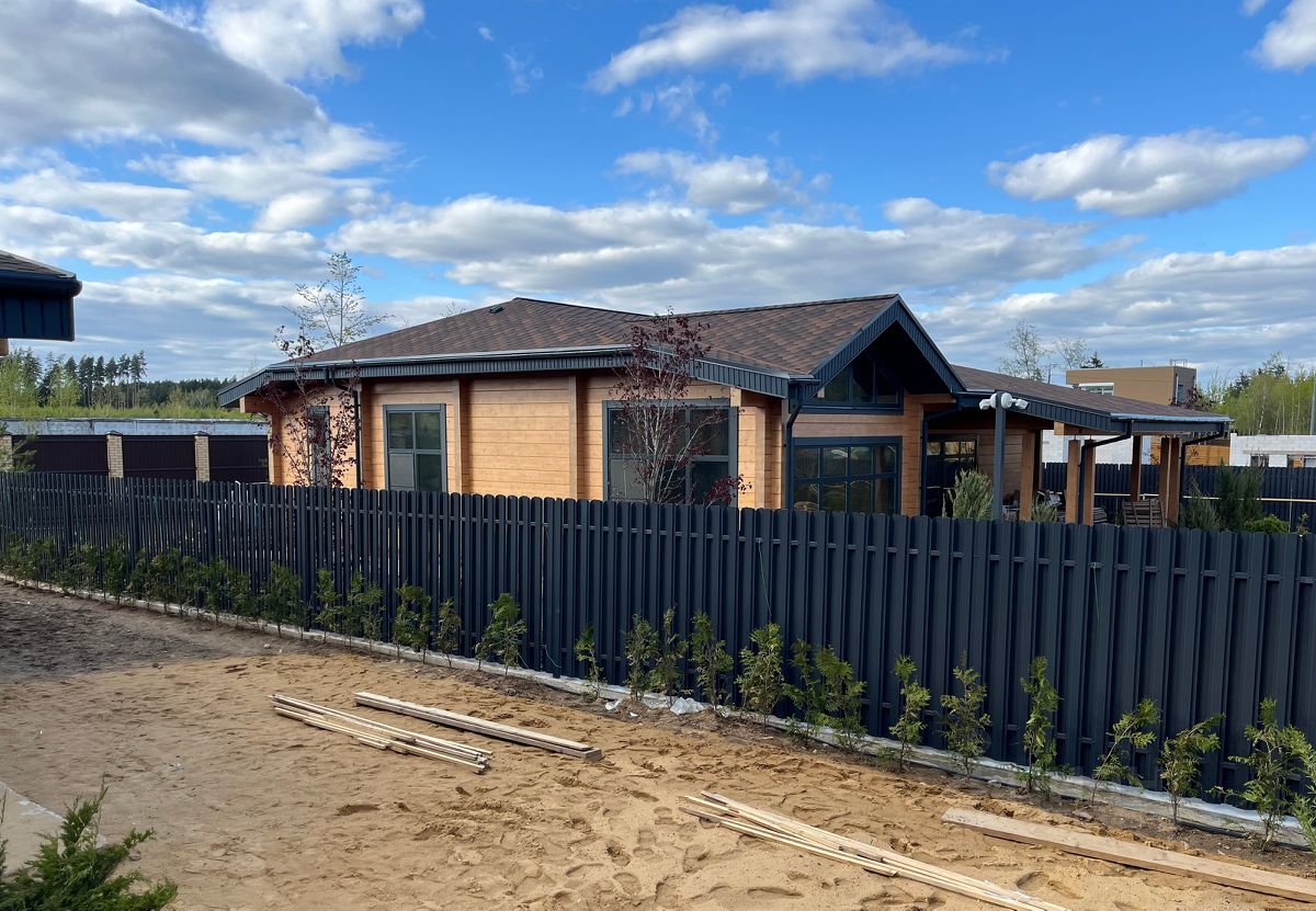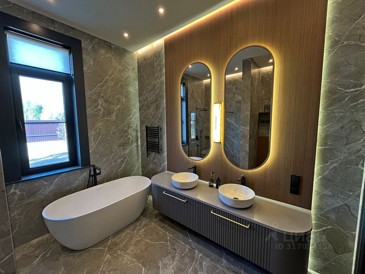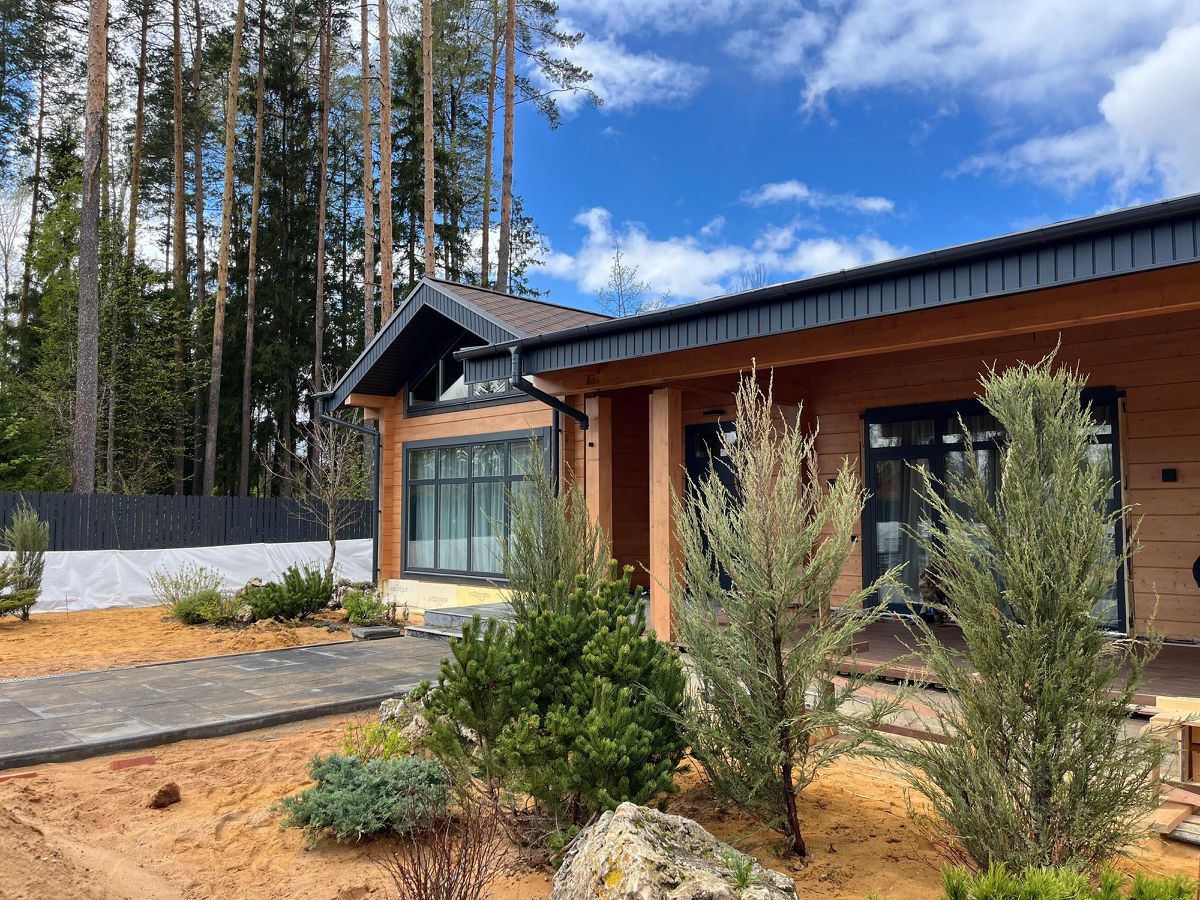 Великолепный одноэтажный дом из бруса с дизайнерским ремонтом под тапочки. Дом общей площадью 250 кв.м. построен по современному архитектурному проекту в одном уровне. В доме 3 спальни, 4 санузла, просторная кухня-столовая с выходом на патио, гостиная с панорамными окнами, холл, кладовая, постирочная. Высота потолков в спальнях 3,2 м, в гостиной и на кухне до 4,5 м. в коньке. Выполнен дизайнерский ремонт с использованием дорогих отделочных материалов, установлено инженерное оборудование и бытовая техника премиальных марок. Участок 15 с. правильной прямоугольной формы. Выполнен профессиональный ландшафтный дизайн, по периметру высажено более 100 туй, постелен рулонный газон. Дополнительно на участке построен гараж на 2м/м с квартирой для персонала, баня с комнатой отдыха.