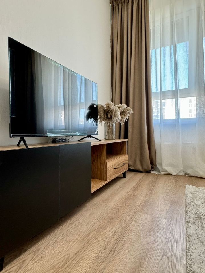 О КВАРТИРЕ: - Полностью меблирована новой современной мебелью. - Установлена качественная техника: стиральная машина, плита, холодильник, микроволновка, ТВ, кондиционер. - Просторная кухня с большим обеденным столом. - Светлый санузел с новой сантехникой. - Большие окна, обеспечивающие много естественного света не солнечная сторона!!! - Современный ремонт в нейтральных тонах, создающий атмосферу уюта.