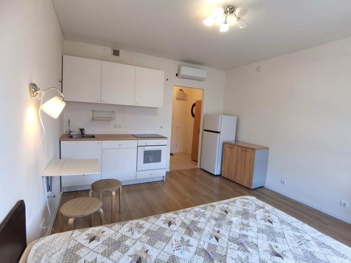 Студия идеально подойдёт как для молодых специалистов, так и для пожилых людей, ценящих тишину и спокойствие загородной жизни. Студия имеет прекрасную планировку, благодаря чему здесь много света и пространства.