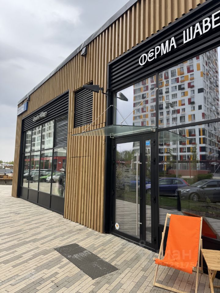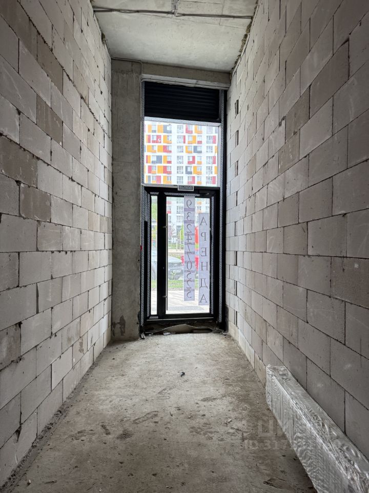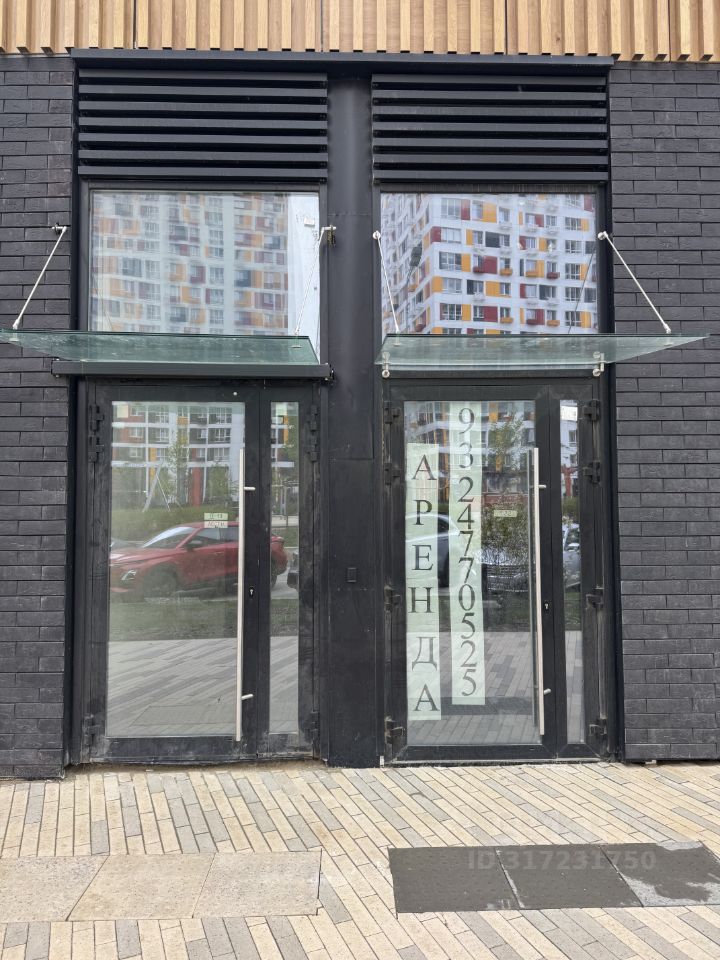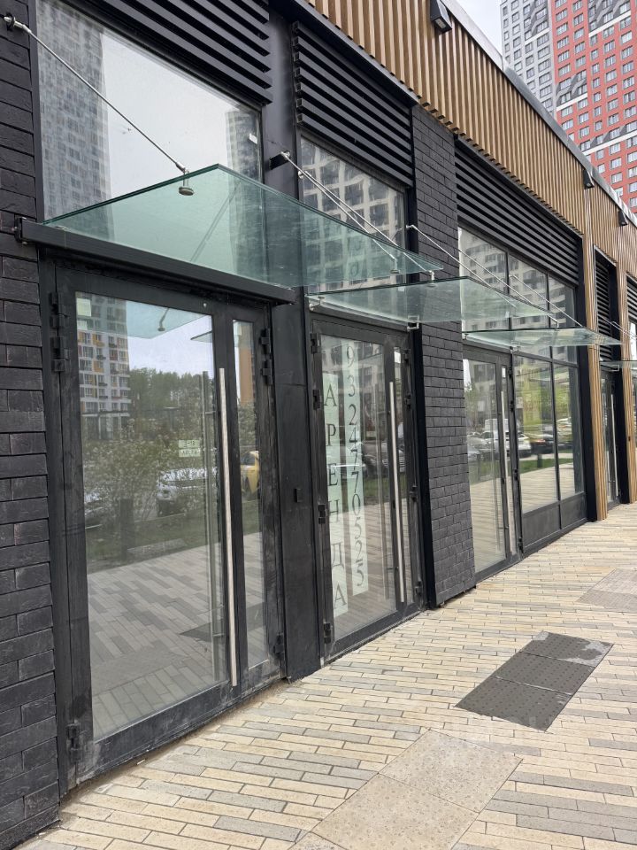 Соседняя дверь - вход в подземный паркинг, обеспечивает дополнительный трафик. В помещении высокие потолки - 5 метров.