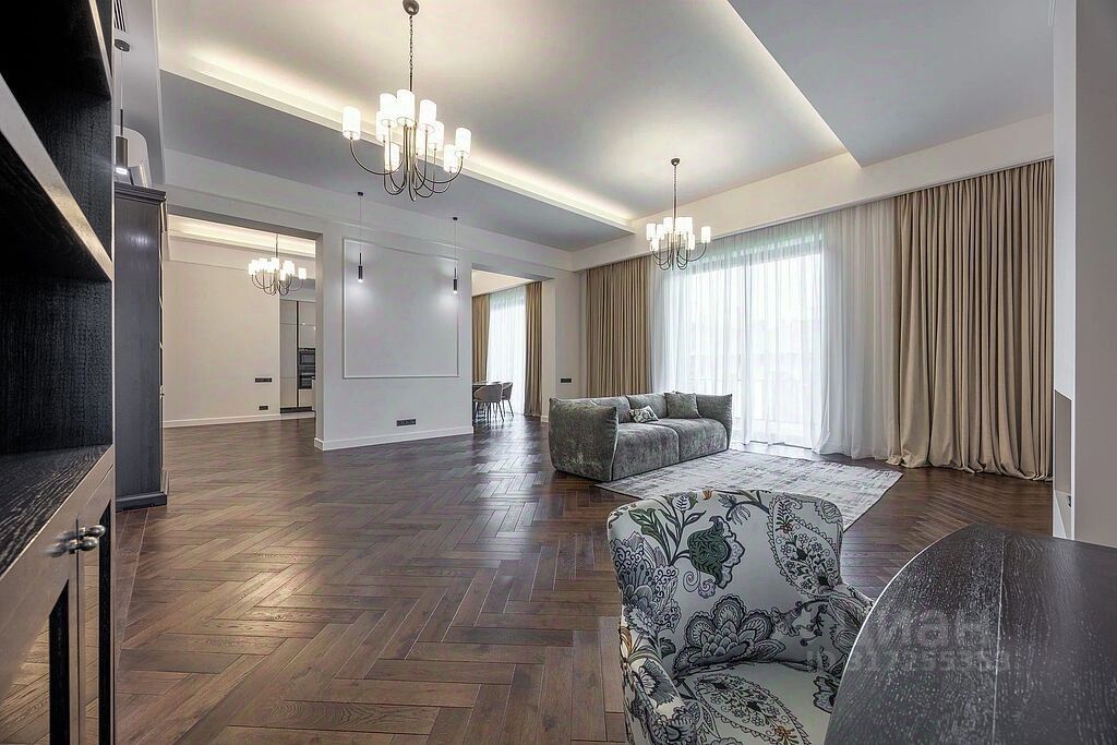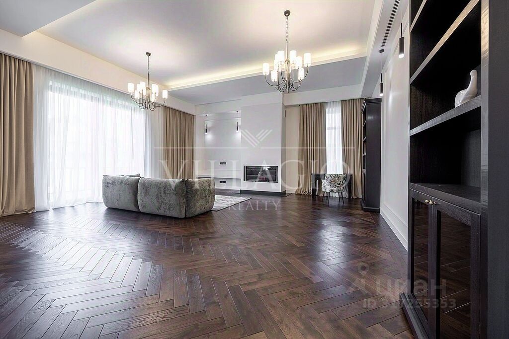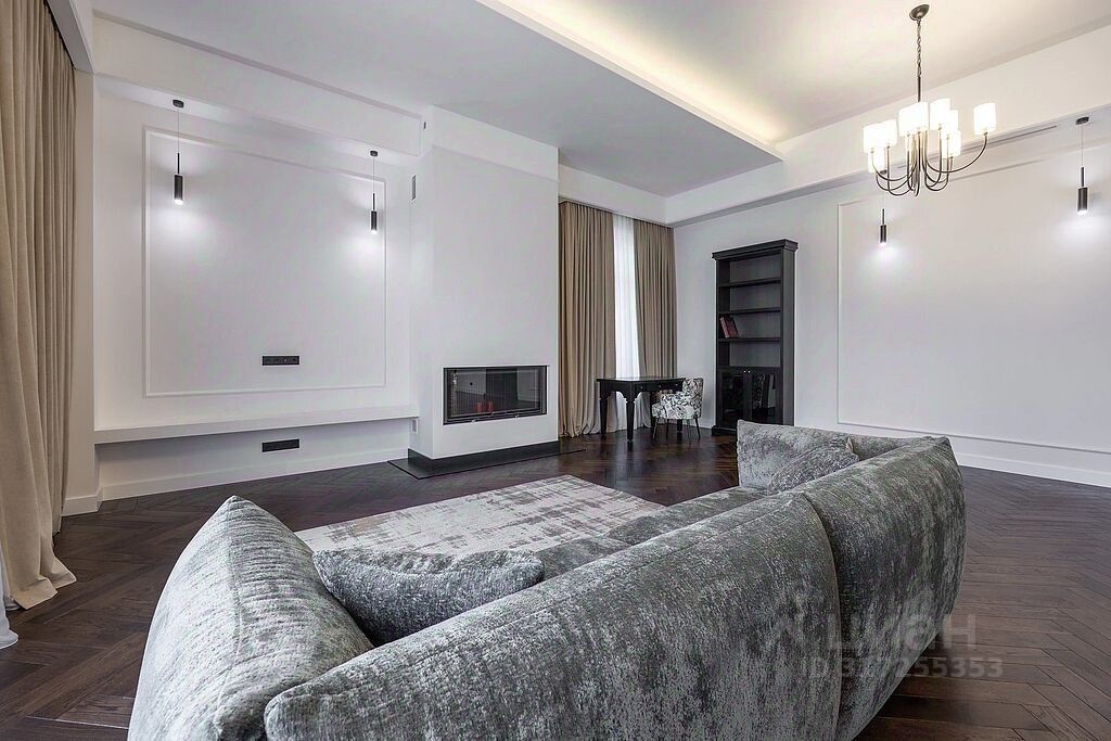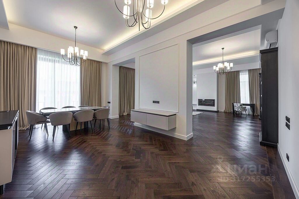 На первом этаже расположены четыре уютные спальни с пятью санузлами и тремя просторными гардеробными, кабинет для работы, столовая, объединенная с каминным залом и имеющая выход на балкон.