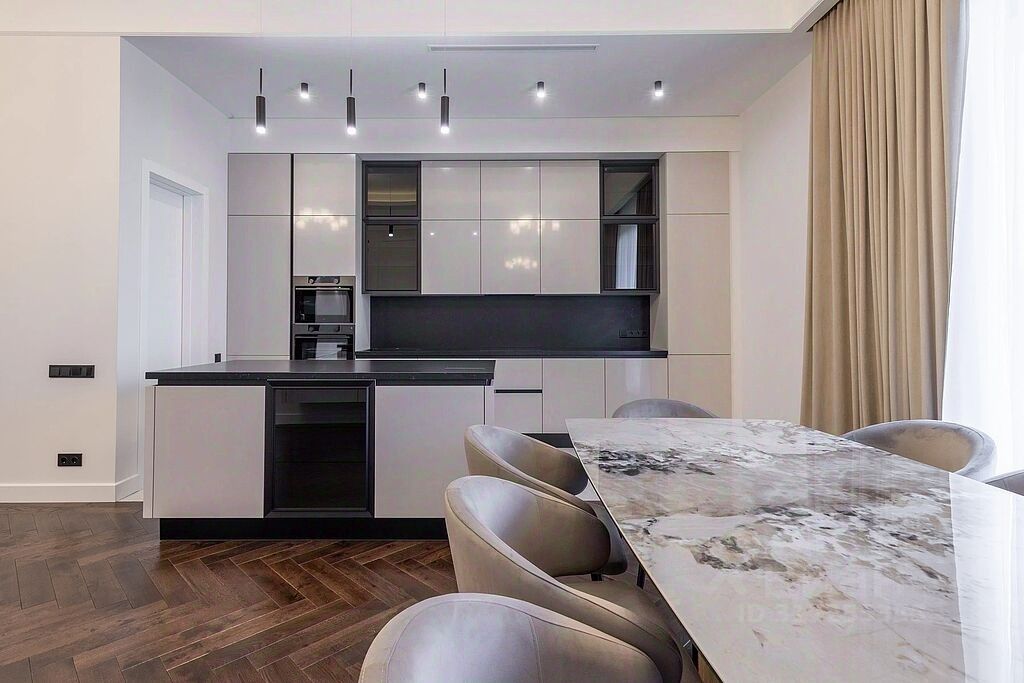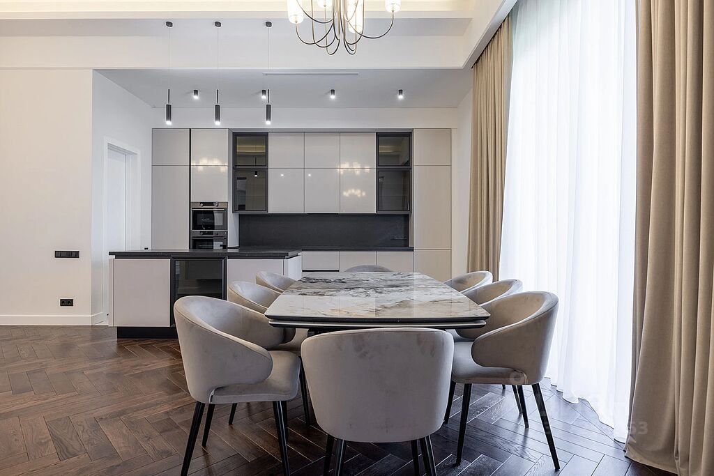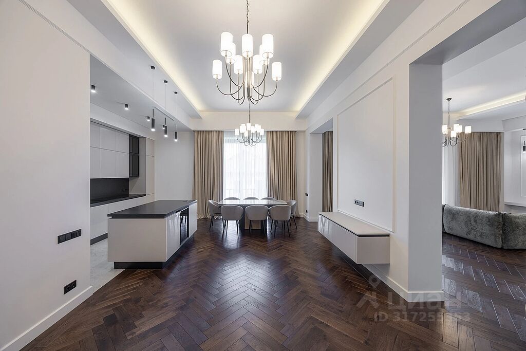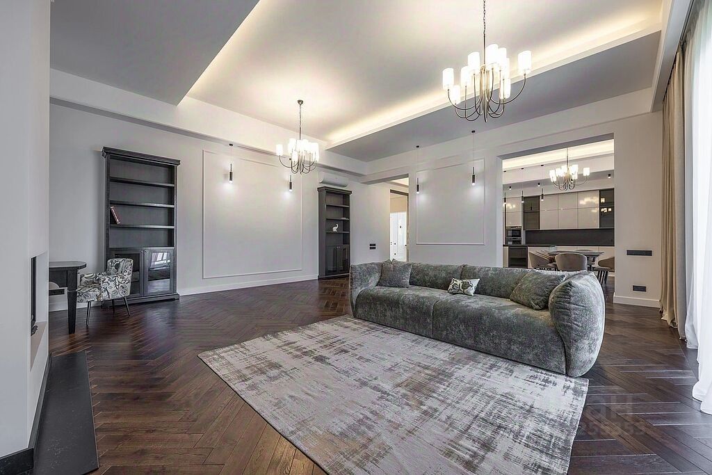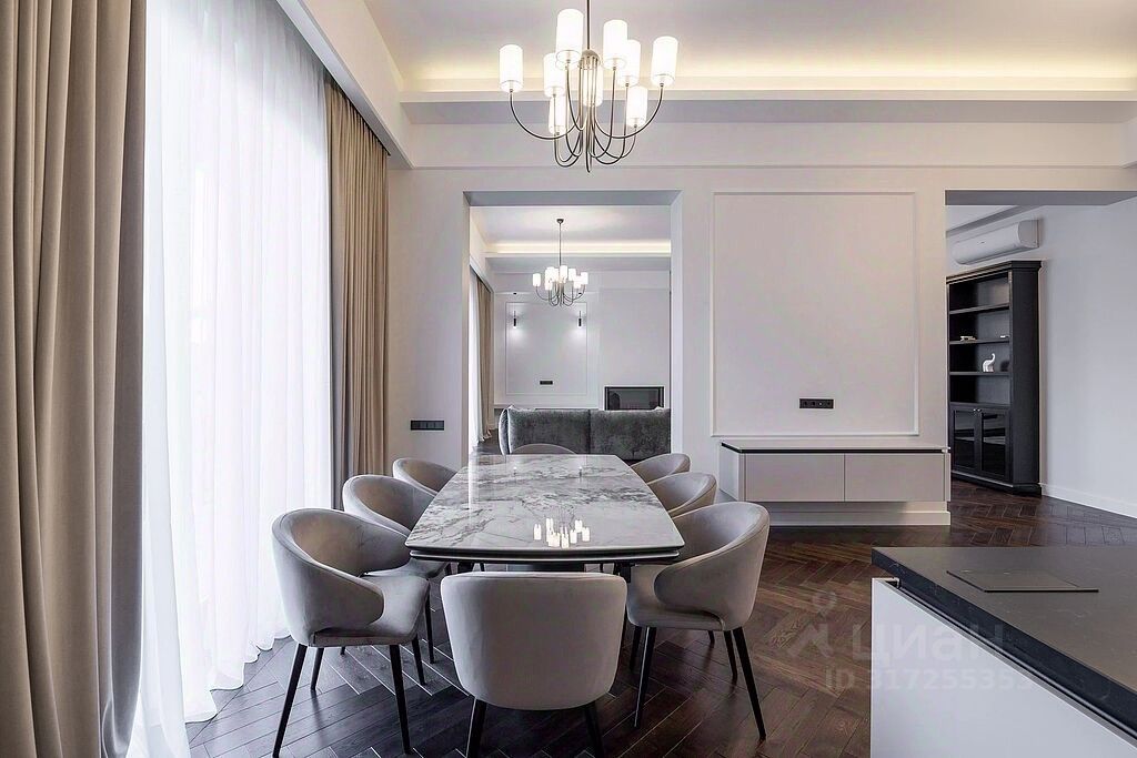 На первом этаже расположены четыре уютные спальни с пятью санузлами и тремя просторными гардеробными, кабинет для работы, столовая, объединенная с каминным залом и имеющая выход на балкон.