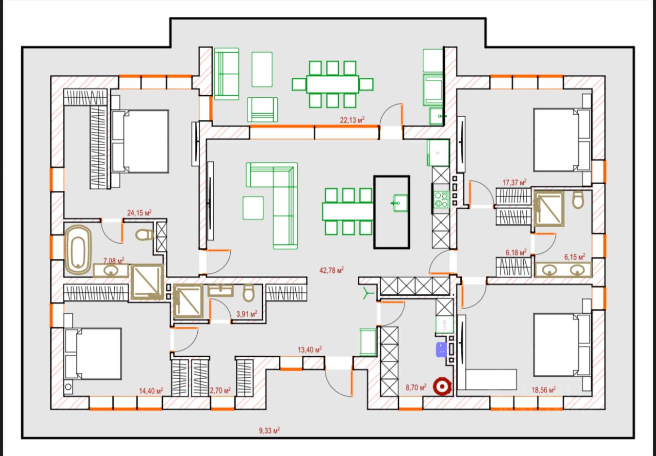 Расскажу Про Дом: Площадь дома 200 м2 Все коммуникации (газ, вода, электричество,канализация) ЦЕНТРАЛЬНЫЕ Фасад выполнен из бельгийского кирпича ручной формовки Vandersand Панорамные окна высотой более 3м с двойным стеклопакетом. Алюминиевый профиль AluTech. высота потолков в гостиной-кухне столовой 4 метра, остальные помещения 3,2м Стены керамический поризованный блок Гжель 440мм.