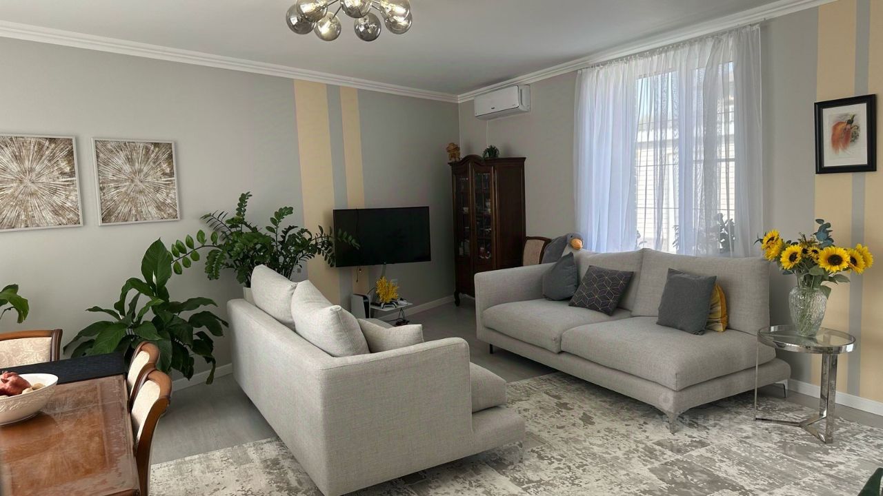 Дом был построен для себя, поэтому он сделан с любовью и вниманием к деталям! Фасад дома отделан натуральным дагестанским камнем и ценными породами дерева. По всему периметру дома установлен теплый пол . Почти вся мебель и техника остаются новым владельцам в подарок, что обеспечит быстрое и комфортное заселение! На первом этаже расположены кухня-гостиная с современной встроенной техникой, уютная комната отдыха с выходом во внутренний двор, небольшая спальня, прихожая, прачечная и санузел. В каждой гостинной установлен кондиционер. На втором этаже расположены три роскошные спальные комнаты, детская , просторная ванная комната и гардеробная.