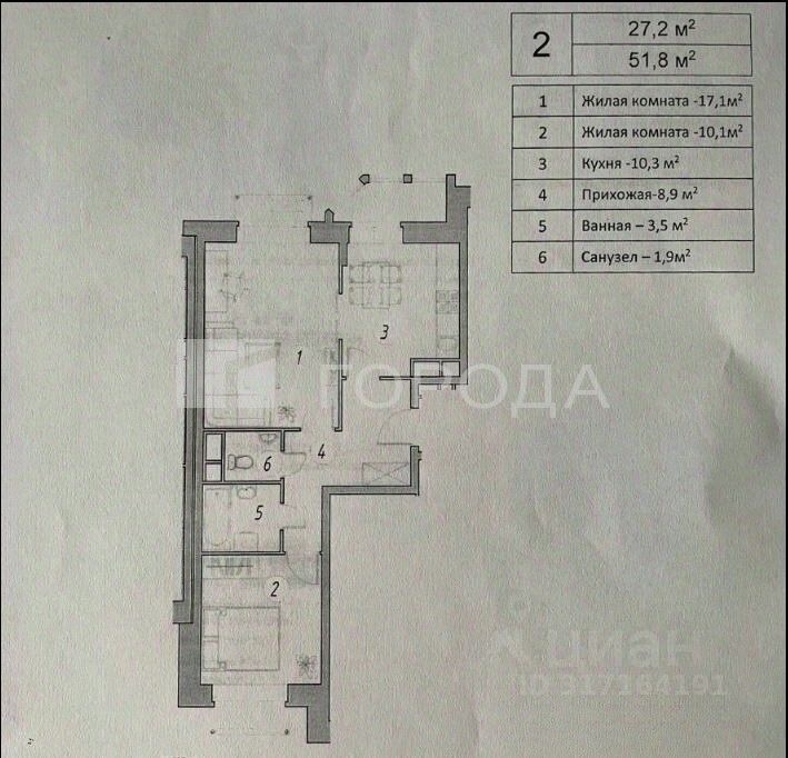 Код объекта: 1588460. Продаётся 2-комнатная квартира с потенциалом для воплощения ваших идей!