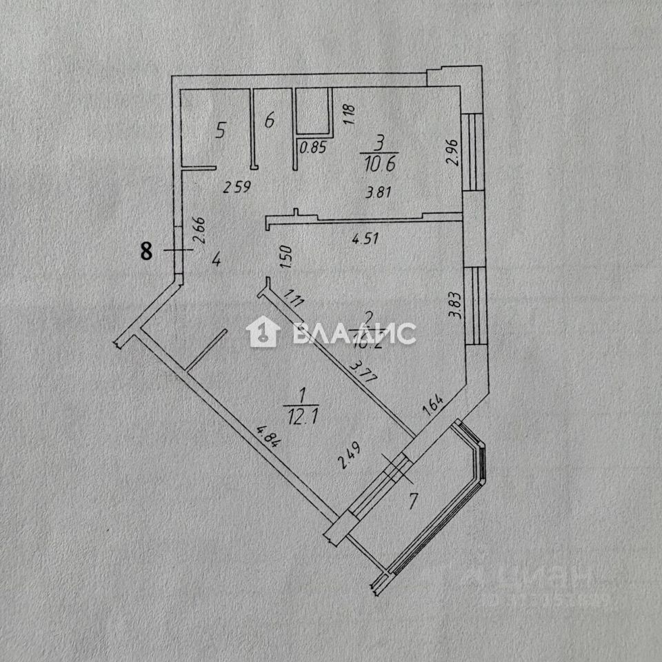 * кухня-гостиная площадью 10,6 м² - с новым ремонтом, и новым кухонным гарнитуром, * гостиная площадью 16,2 м², * спальня площадью 12,1 м² с балконом (3,9 м²), * раздельный санузел с ванной (2,9 м²) и туалетом (1,6 м²).