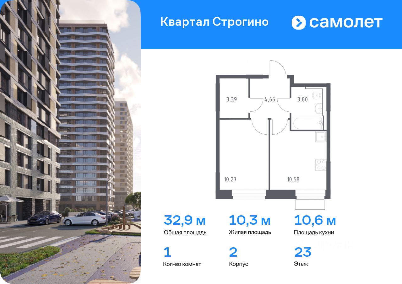 Предлагается 1-комнатная квартира комфорт-класса 32,85 кв.м в корпусе 2 на 23 этаже, в ЖК ''Квартал Строгино'' Квартира без отделки. Доступность опции ''отделка'' и возможность комплектации мебелью и декором уточняйте у застройщика.