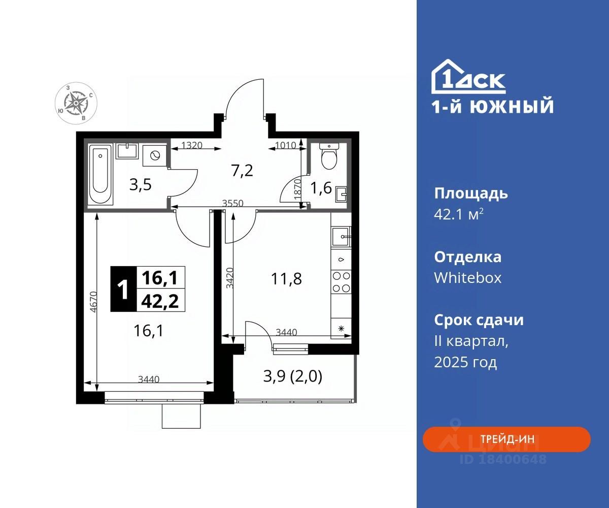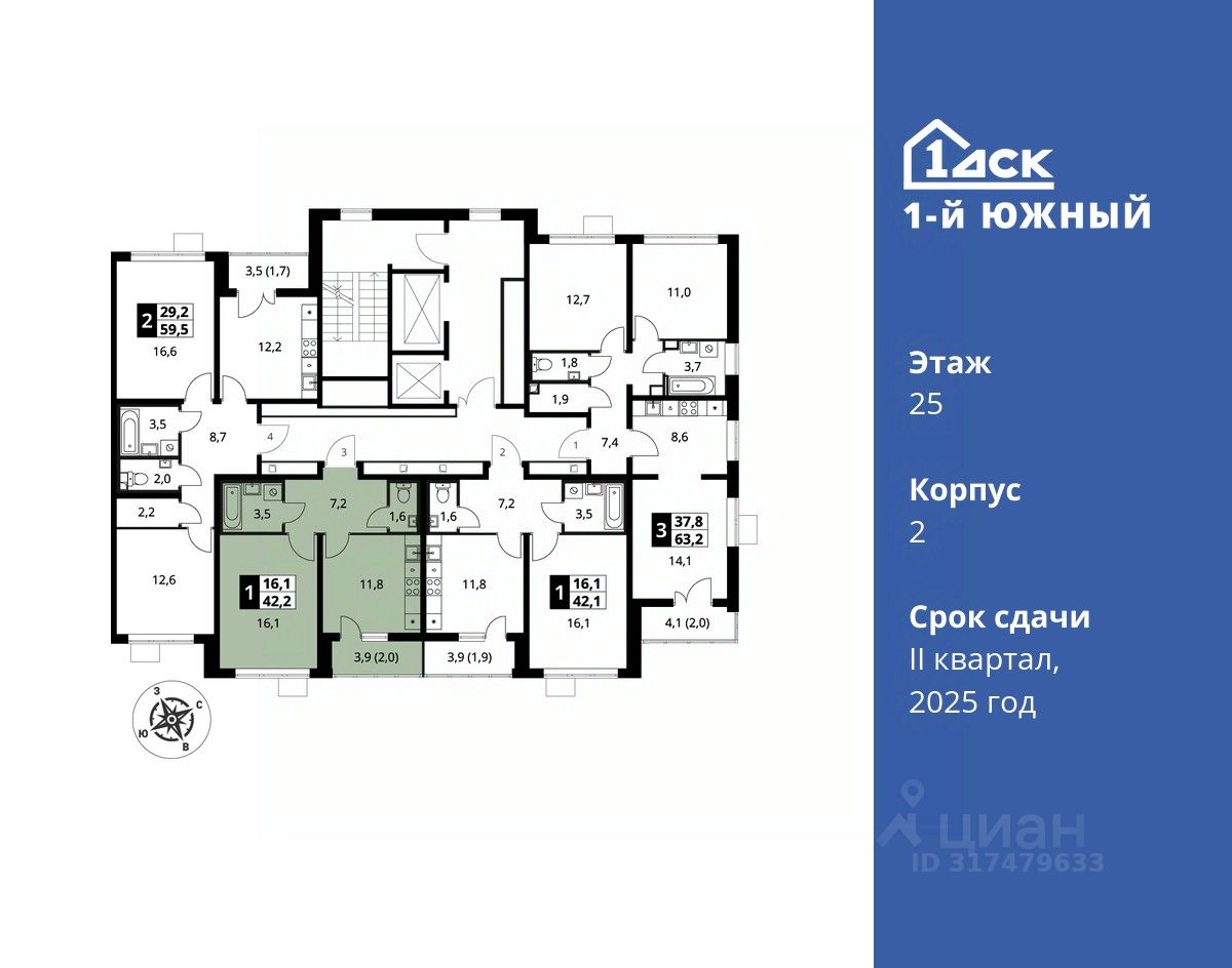 Максимальные скидки при 100% оплате. Trade-in вместо первоначального взноса - выгодно обменяйте вашу квартиру на новую! Корпус сдан! Прямая продажа от застройщика! Жилой Комплекс класса Комфорт плюс. Продаётся 1-к квартира номер 757 в сданном корпусе общей площадью 42.1 кв.м на 25-м этаже 25 этажного дома.