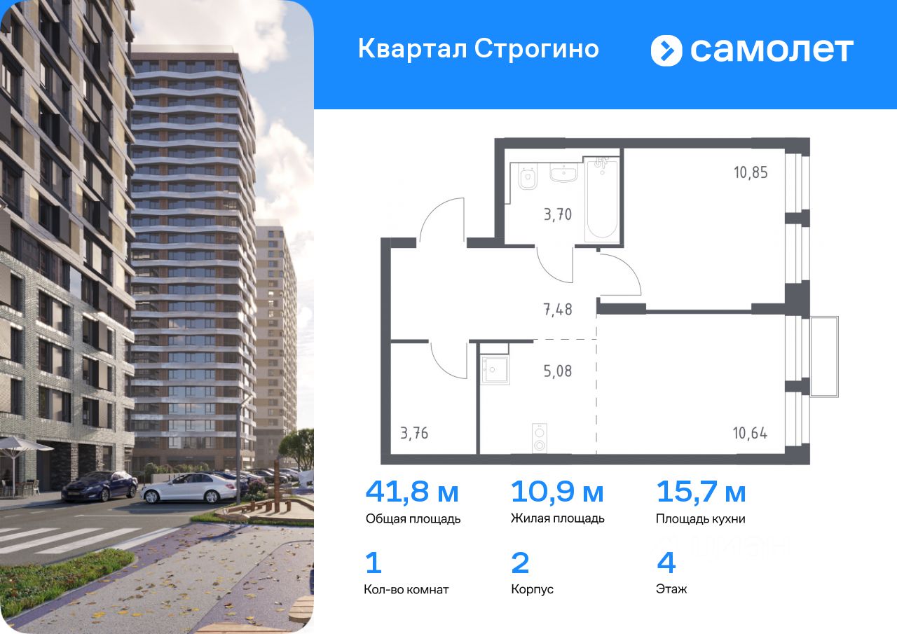 Предлагается 1-комнатная квартира комфорт-класса 41,75 кв.м в корпусе 2 на 4 этаже, в ЖК ''Квартал Строгино'' Квартира без отделки. Доступность опции ''отделка'' и возможность комплектации мебелью и декором уточняйте у застройщика.