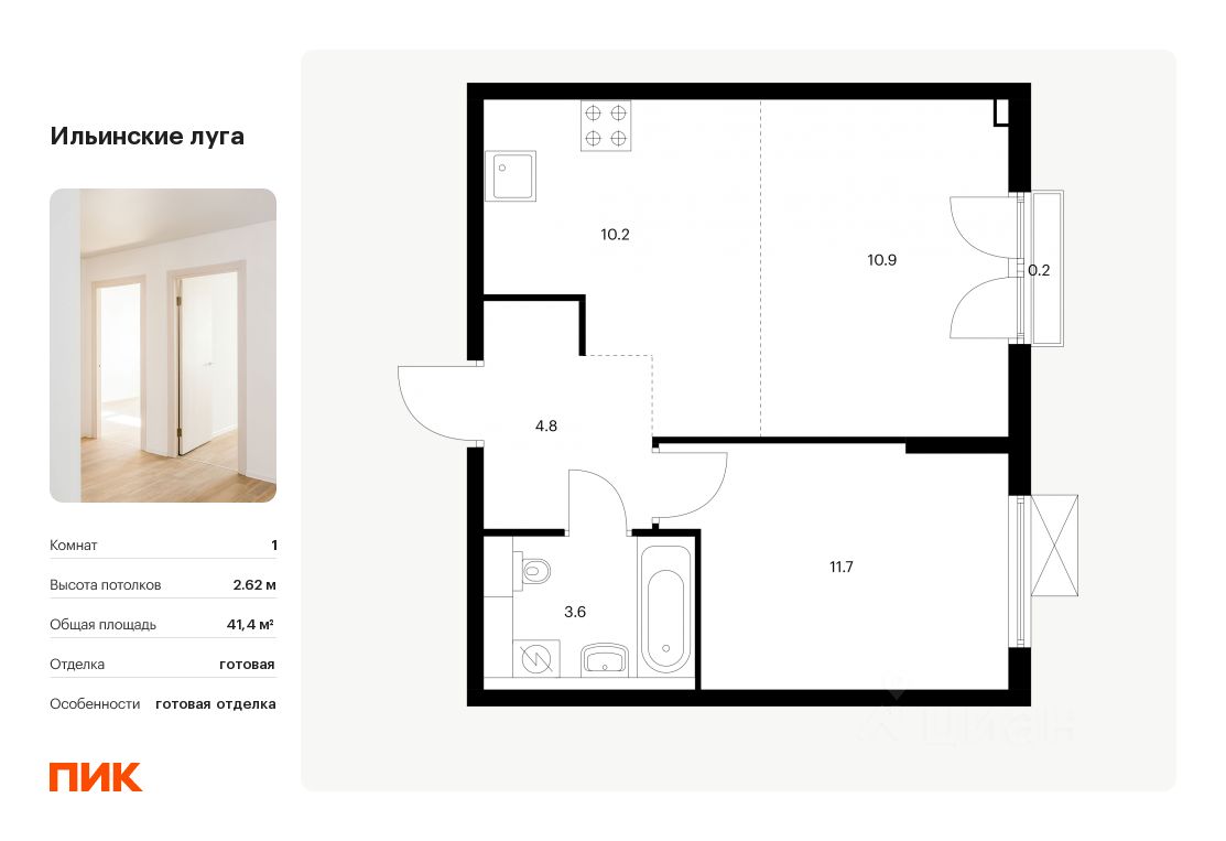 Продаётся 1-комн. квартира площадью 41,4 кв.м на 3 этаже 9 этажного дома (Корпус 2.9, Секция 3) проекта ПИК Ильинские луга. Светлый просторный подъезд на уровне земли, функциональная планировка, большие окна, c отделкой.