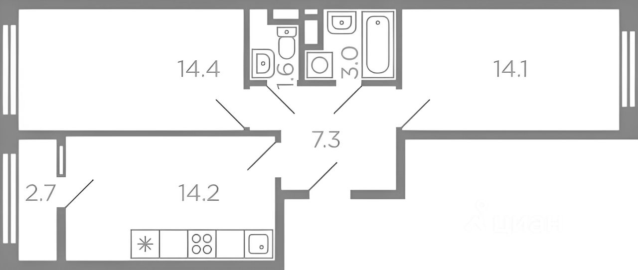 УДОБСТВО КВАРТИРЫ - Функциональная квартирa с евроремонтом, полностью меблированная - Техника: холодильник, стиральная машина, телевизор, плита, микроволновая печь - Количество разделённых санузлов: 1 - Количество балконов/лоджий: 1