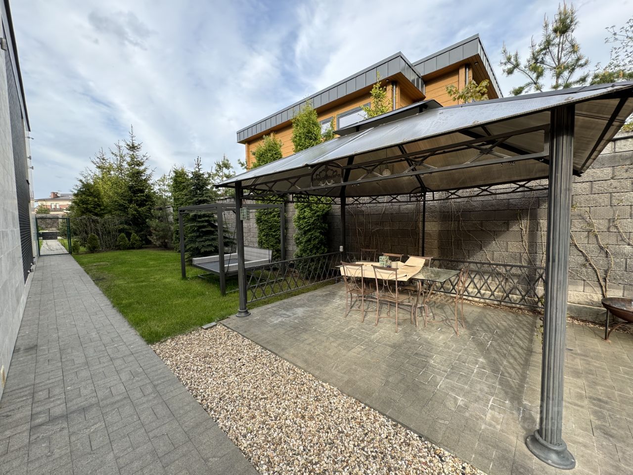 Охраняемый коттеджный поселок Никольская Слобода, дом-дуплекс, современный дизайнерский ремонт, 300 кв.м, 2 уровня, 1 эт: гараж на 2 авто, прихожая с гардеробной, с/у(гостевой), построчная, гостиная-кухня- столовая, выход на участок. 2 эт: холл, мастер спальня с с/у+ванна и гардеробной, спальня, с/у+душ, комната св.назначения без окон, Гараж на 2 м/м + парковка.