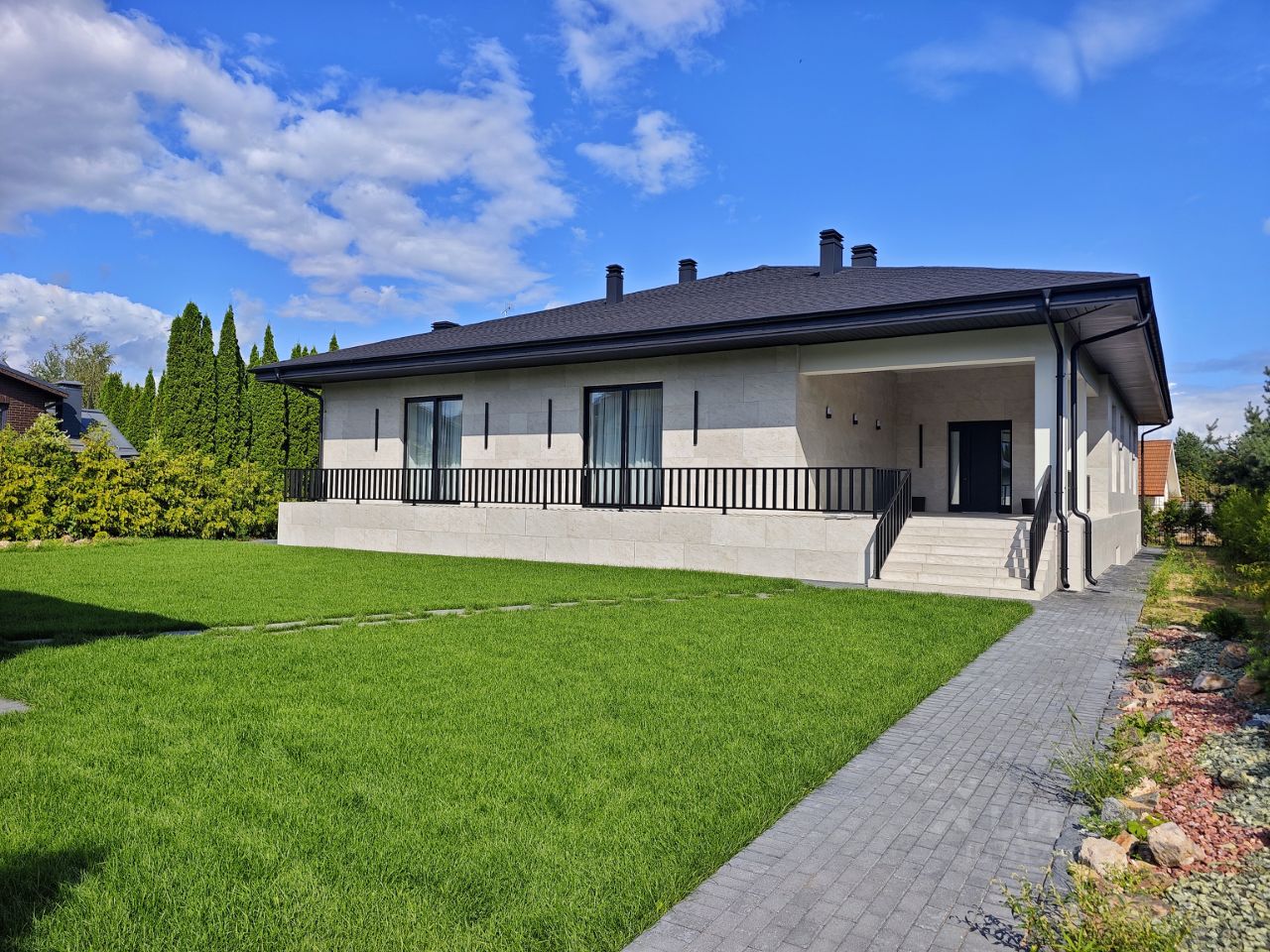 Продаётся новый светлый дом с оригинальной планировкой в охраняемом коттеджном посёлке. В посёлке есть школа и детский сад. В шаговой доступности находятся спортивный центр, озеро, лес, магазин и аптека — всё для комфортной жизни.