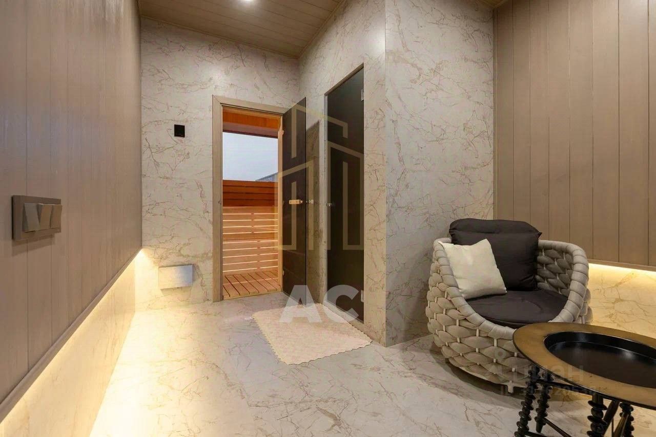 Предельно функционален и обеспечивает максимальный уровень комфорта. Премиальное качество мебели и материалов для отделки. Особое внимание уделяется освещению, соответствующее единой дизайнерской концепции. Умный дом, теплые полы, вентиляция и кондиционирование. В доме 5 спален, 5 с/у, гардеробные, гостиная, столовая с панорамными окнами и выходом к зоне барбекю, зона СПА, большая терраса на крыше дома, теплый гараж на два авто. Перед домом дополнительная парковочная площадка. Самый большой и видовой участок. Дом подключен к центральным коммуникациям.