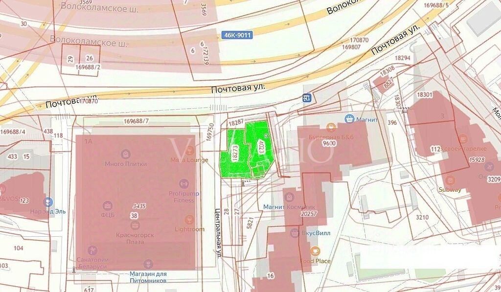 ID: KP12 В СОБСТВЕННОСТИ! Прямая продажа. Участок 940 м2 с построенными зданиями: нежилое здание по коммерцию (хозяйственное строение или сооружение вспомогательного использования) 370 м2 (первый этаж монолит, второй выполнен из отборного сруба кедра большого диаметра) (эксплуатировался как Избариум: выставка и магазин аквариумных рыб и рептилий) и жилое здание 41 м2. На первой линии Волоколамского шоссе в густонаселенном районе г. Красногорск.