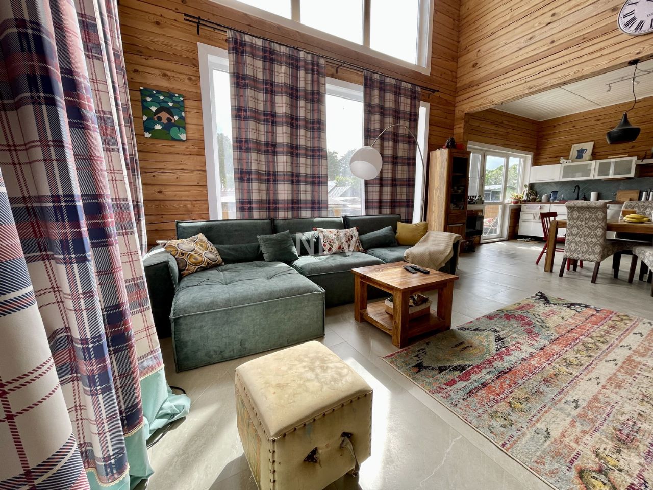 Общая планировка: кухня-гостиная, 4 спальни, кабинет (можно сделать ещё одну спальню), 4 санузла, гардеробные, две постирочные. Два балкона и просторная терраса для утреннего кофе или вечерних встреч. Первый этаж — тёплые водяные полы, крупноформатный керамогранит 12060. Второй этаж — деревянные полы, радиаторное отопление. Большой подвал с потолками 3 метра, под всем домом — сухой подпол. Коммуникации: водоснабжение, электричество, газ, септик.