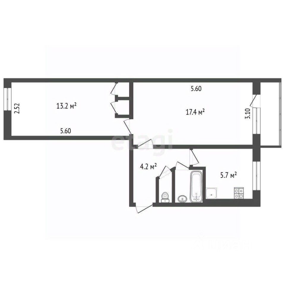 Основные характеристики квартиры: - Общая площадь: 43 м². - 2-й этаж трехэтажного кирпичного дома. - Высота потолков: 2,5 м. - Окна во двор.