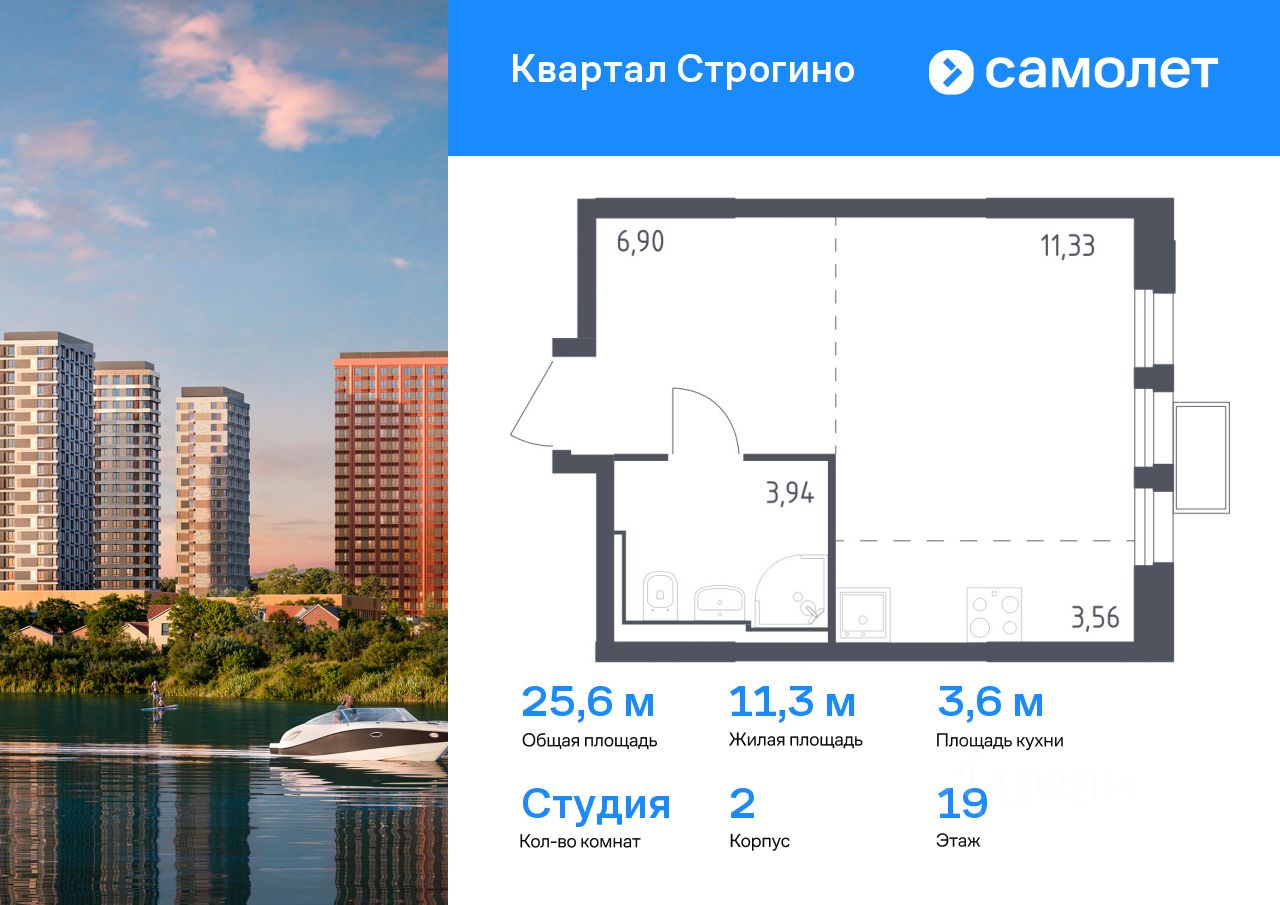 Предлагается квартира студия комфорт-класса 25,63 кв.м в корпусе 2 на 19 этаже, в ЖК ''Квартал Строгино'' Квартира с чистовой отделкой. Доступность дополнительных опций уточняйте у застройщика.