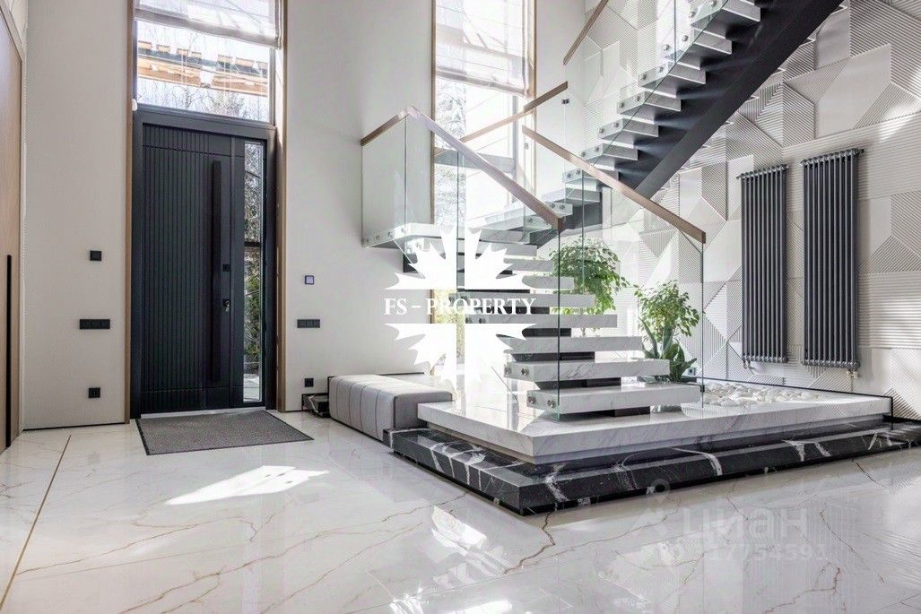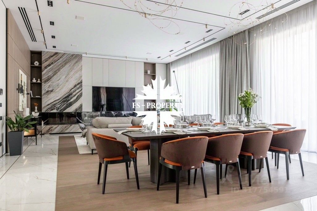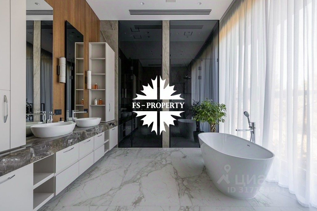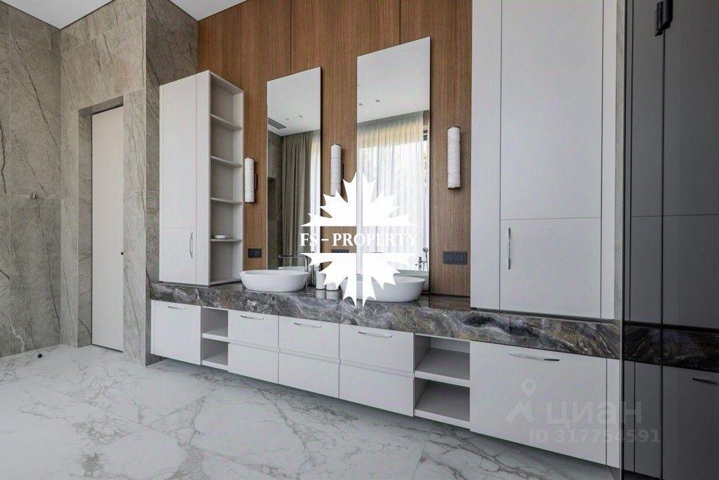 ID: 8301. Вашему вниманию предлагается новый современный дом в закрытом охраняемом коттеджном поселке Никольская Слобода. В доме 7 спален, 11 санузлов. Фасад дома выполнен из натурального камня, гранита, керамогранита. Фундамент дома выполнен из монолитной плиты, стены из кирпича, монолитный железобетон, перекрытия — монолитный железобетон, окна деревянные. Внутренняя отделка дома выполнена из дорогих материалов, высококачественная дорогая техника и сантехника известных брендовых марок. По периметру дома система видеонаблюдения. В доме пожарная сигнализация, интернет проведен, бесшовный Wi-Fi, ТВ, аудио мультирум, домофон, электропривод штор, система защиты от протечек, усиление сотовой связи. Котельное оборудование Buderus с зональным управлением климатом, водяные теплые полы, дизайнерские радиаторы.