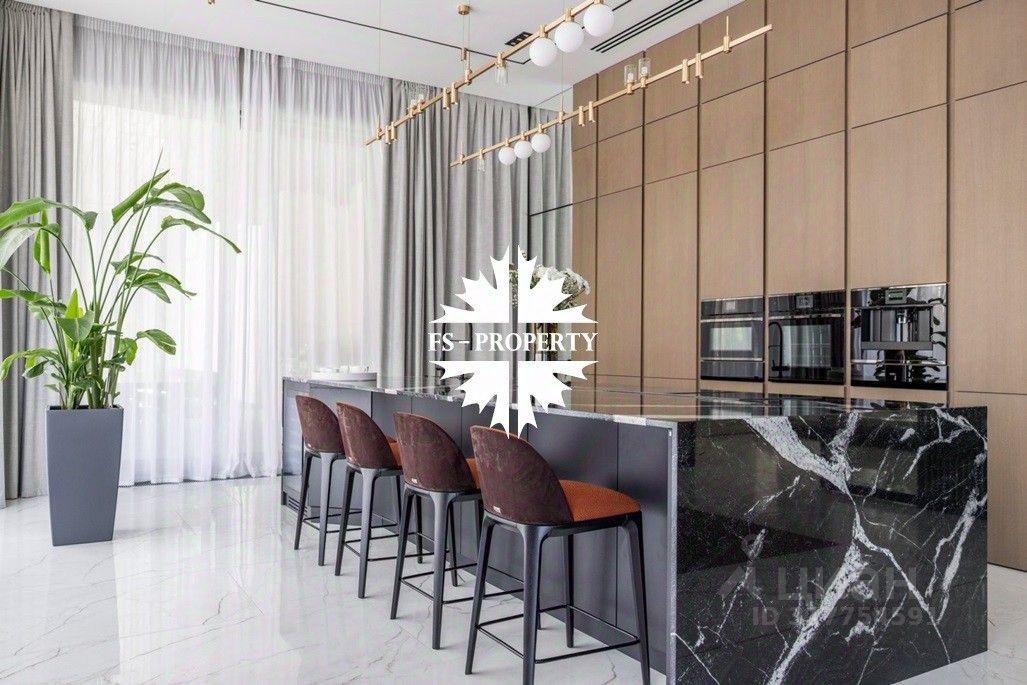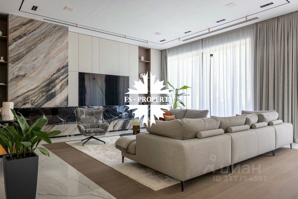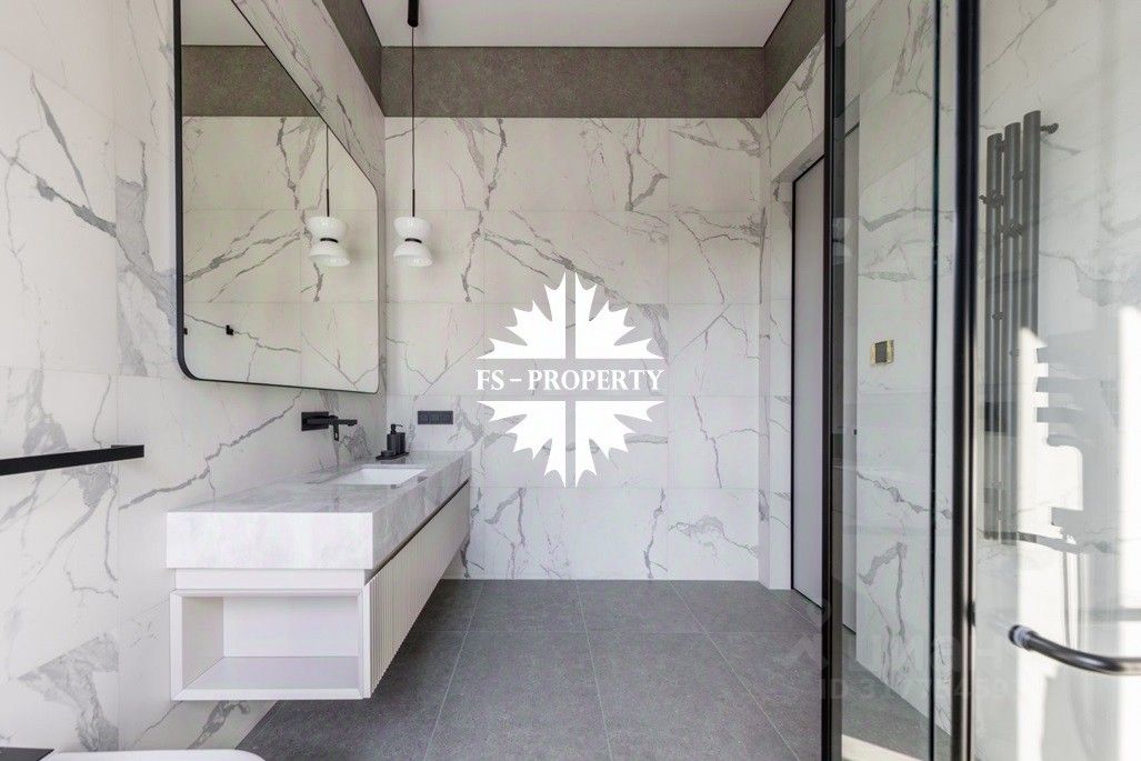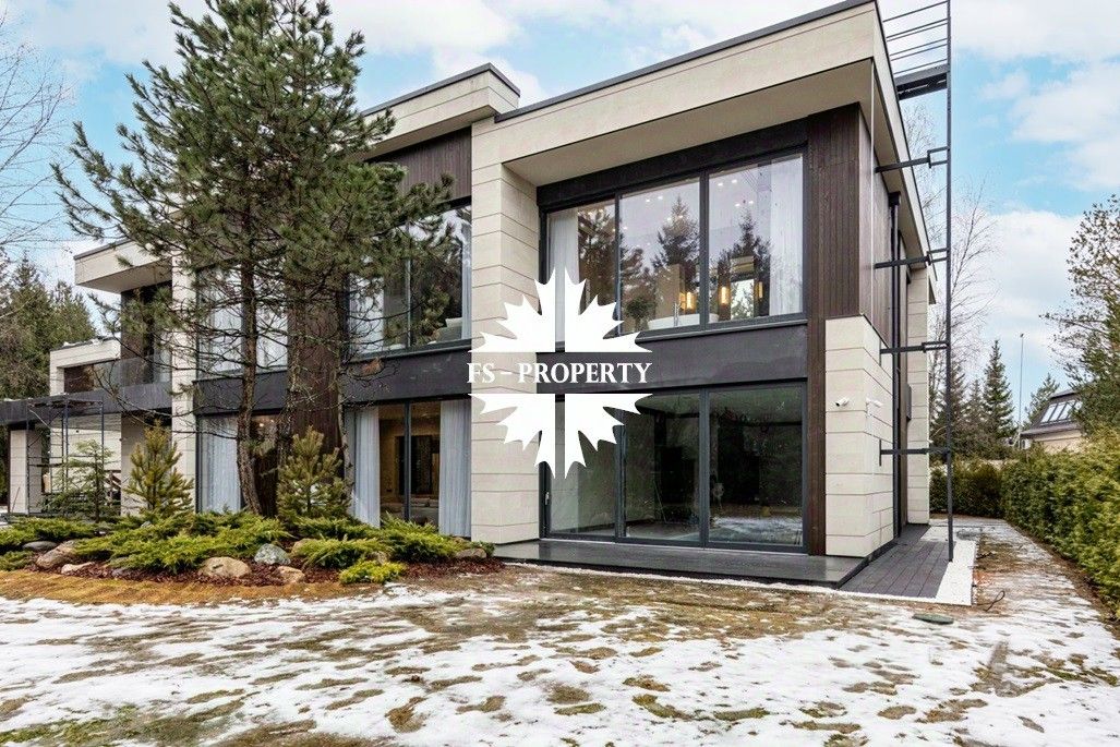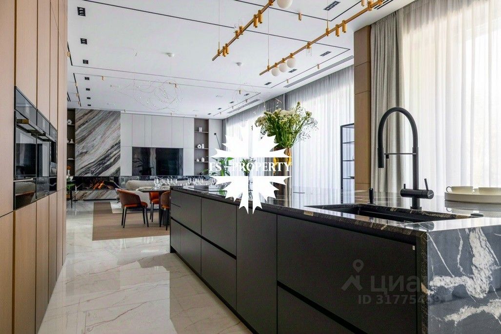 ID: 8301. Вашему вниманию предлагается новый современный дом в закрытом охраняемом коттеджном поселке Никольская Слобода. В доме 7 спален, 11 санузлов. Фасад дома выполнен из натурального камня, гранита, керамогранита. Фундамент дома выполнен из монолитной плиты, стены из кирпича, монолитный железобетон, перекрытия — монолитный железобетон, окна деревянные. Внутренняя отделка дома выполнена из дорогих материалов, высококачественная дорогая техника и сантехника известных брендовых марок. По периметру дома система видеонаблюдения. В доме пожарная сигнализация, интернет проведен, бесшовный Wi-Fi, ТВ, аудио мультирум, домофон, электропривод штор, система защиты от протечек, усиление сотовой связи. Котельное оборудование Buderus с зональным управлением климатом, водяные теплые полы, дизайнерские радиаторы.