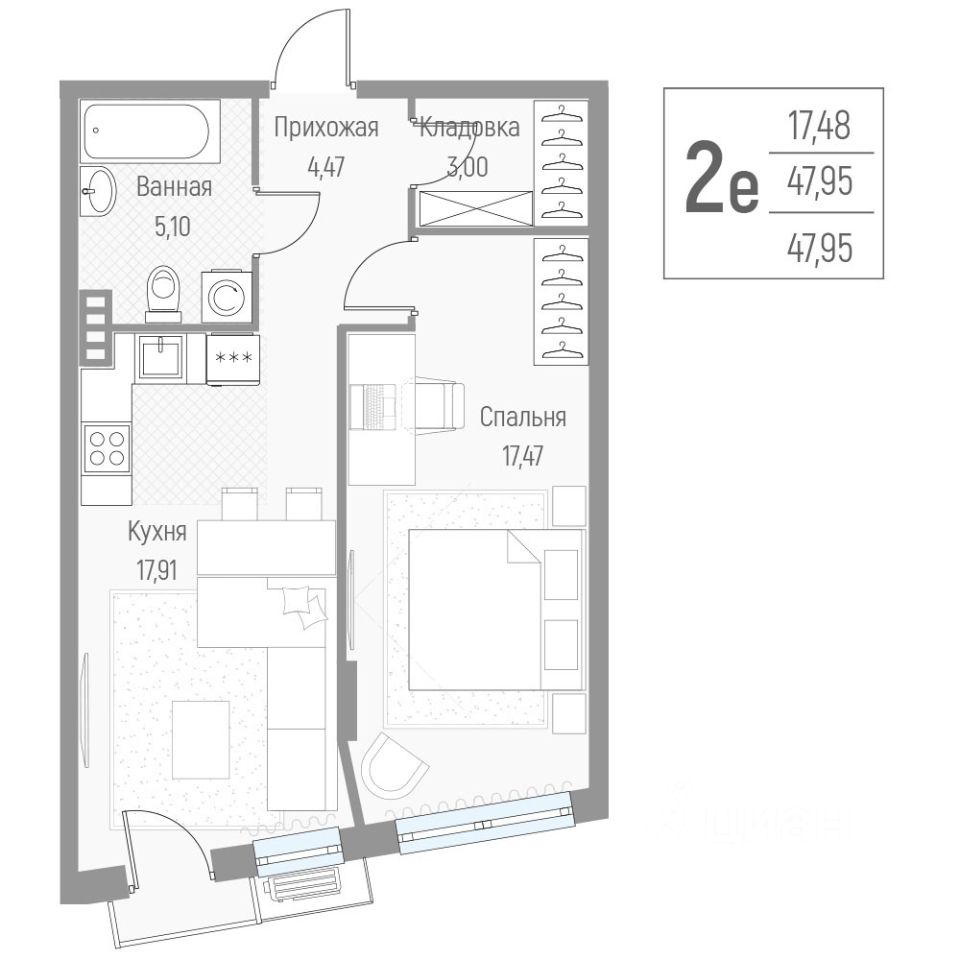 Квартира без отделки в клубном доме ''Эльйон'' в Одинцовском районе. Свободная планировка, высота потолка 3,1 м. Доступен заказ отделки под ключ или white box.