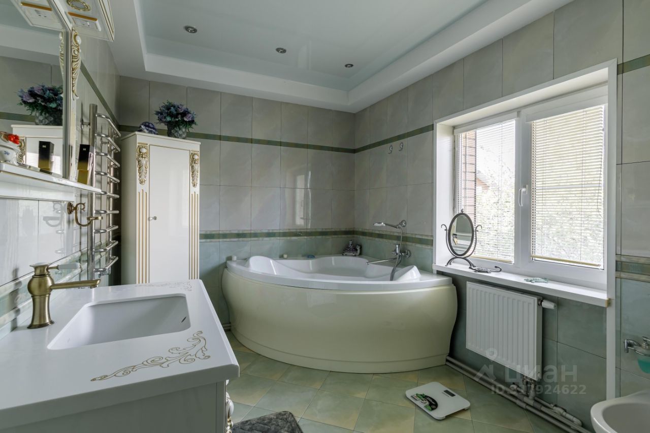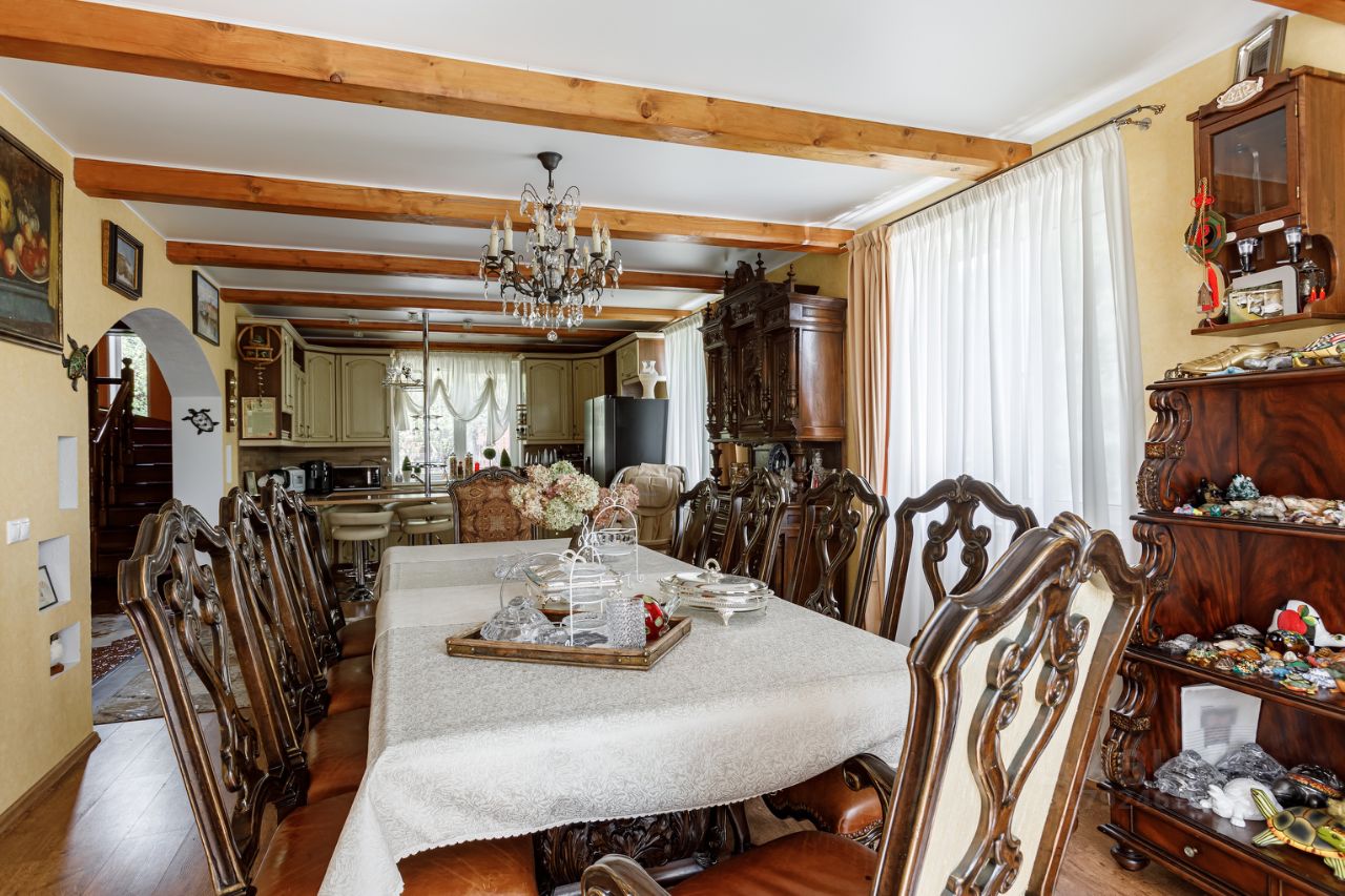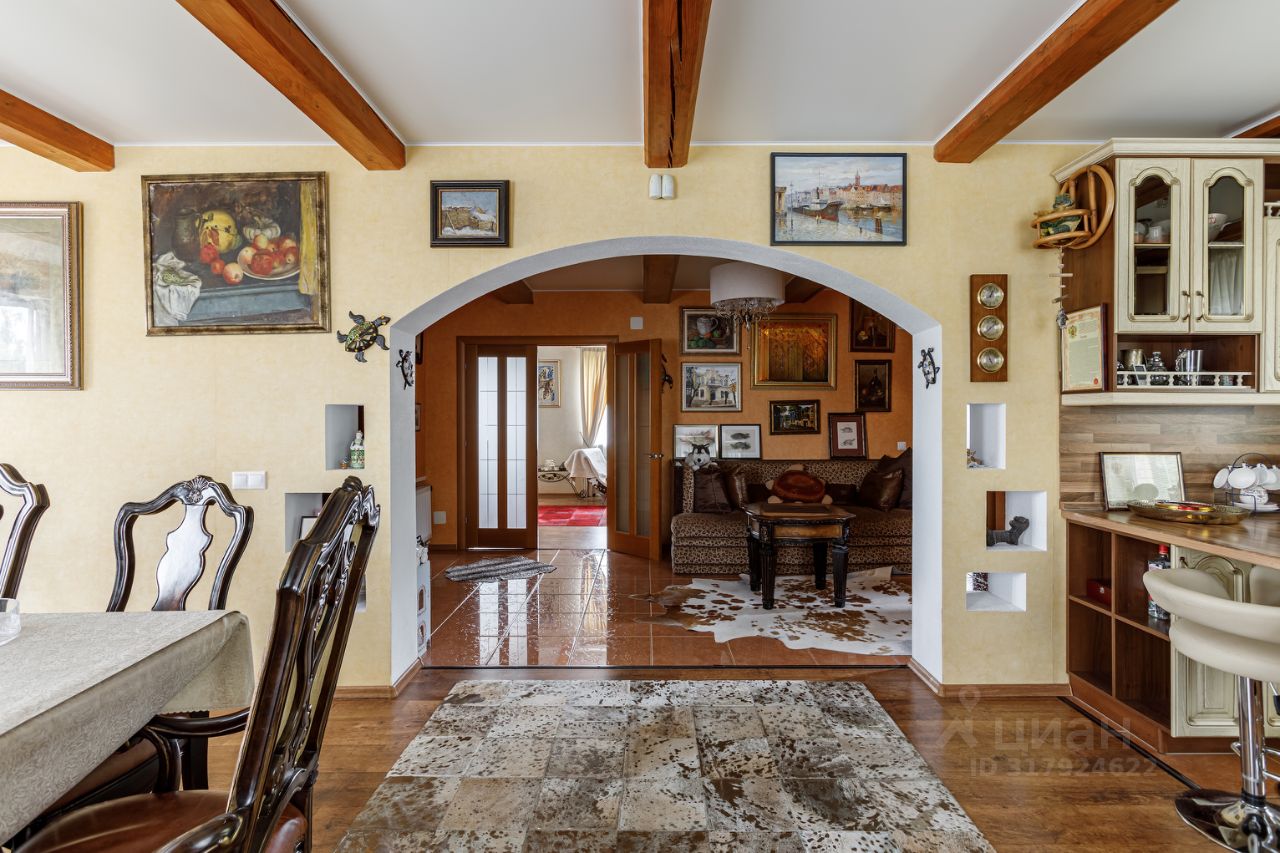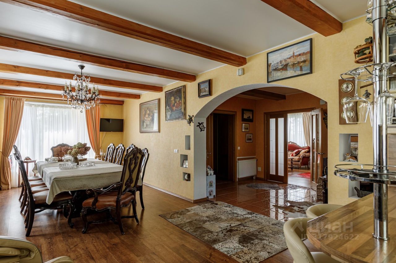 Вашему вниманию представляется полностью готовый дом общей площадью 370 кв.м., расположенный на благоустроенном участке 12 соток. Помимо основного дома на участке расположены баня (сруб осины) с верандой и гостевой бревенчатый дом площадью 60 кв.м. На участке выполнен ландшафтный дизайн, система дренажа, установлено декоративное освещение, дорожки вымощены брусчаткой. Участок и все строения зарегистрированы и имеют кадастровые номера. Дом построен из экологических и качественных материалов. Фундамент - монолитная плита, стены - брус 15 с утеплением и обложен кирпичом. Функциональная планировка позволяет жить в уюте и комфорте: Первый этаж: просторная кухня - столовая, гостиная с дровяным камином, уютный холл и сан/узел с ванной, Второй этаж: три спальни, сан/узел с ванной и кабинет с красивым балконом. Мансардный этаж: две спальни и уютный холл- гостиная. На минус первом этаже (подвал): котельная, гараж, уютная бильярдная, гостевой сан/узел, гардеробная- постирочная и кладовая.