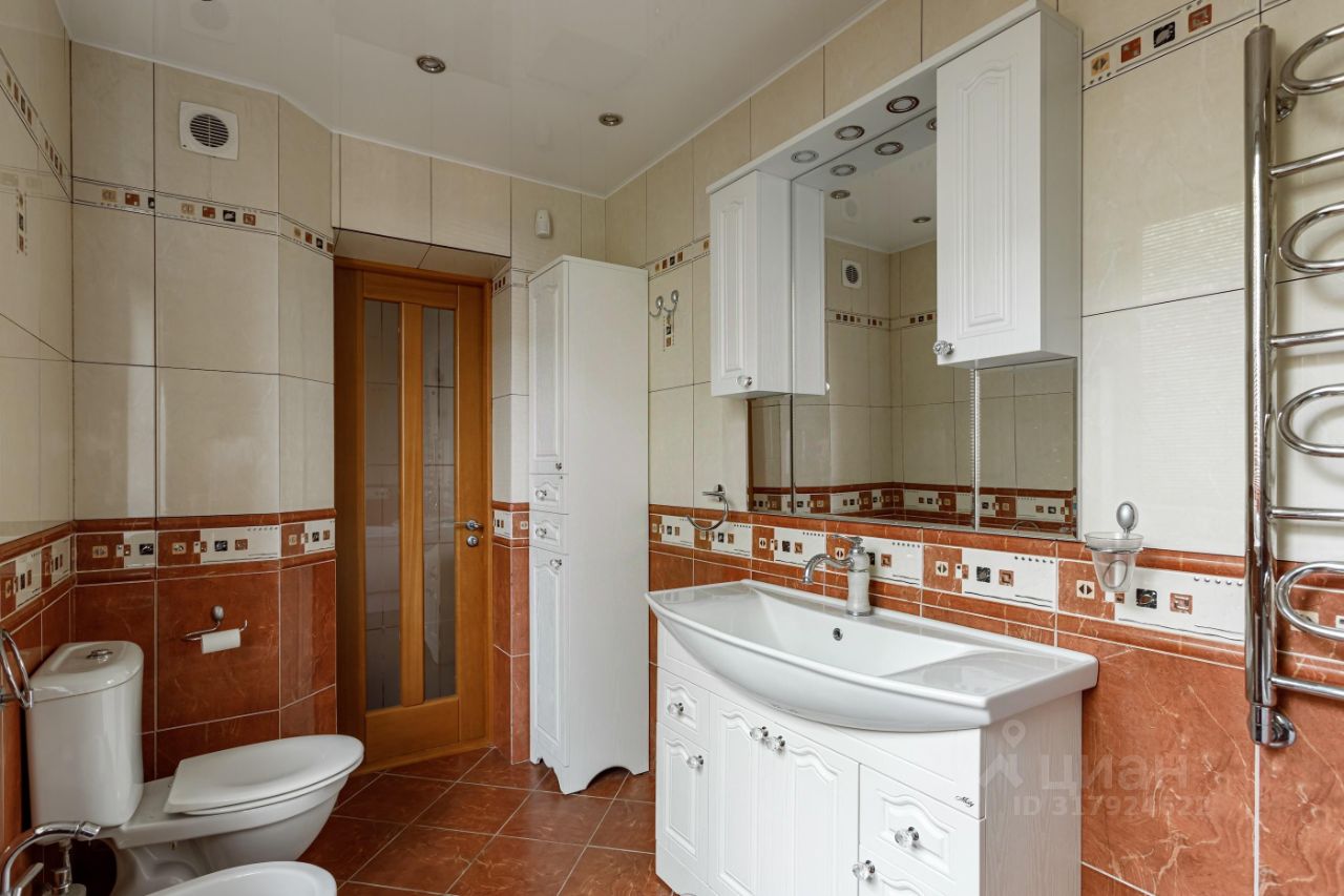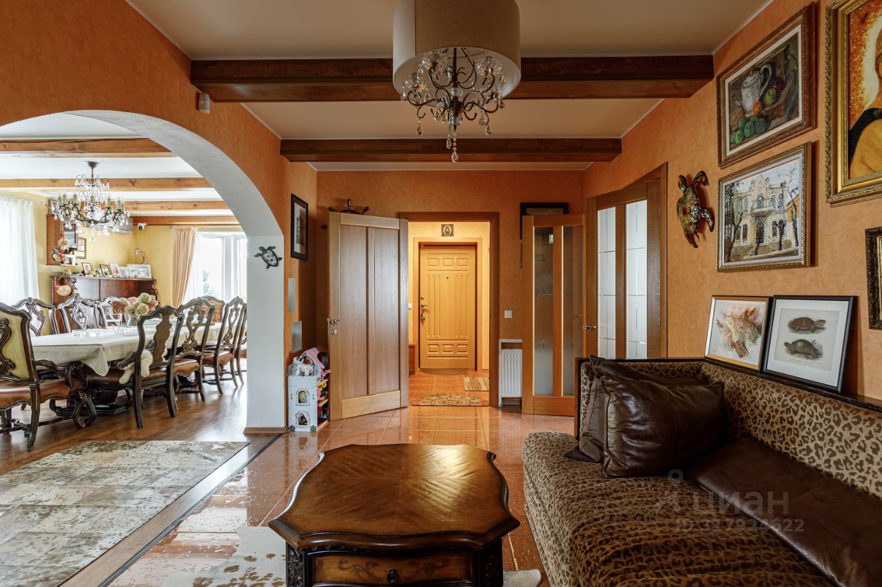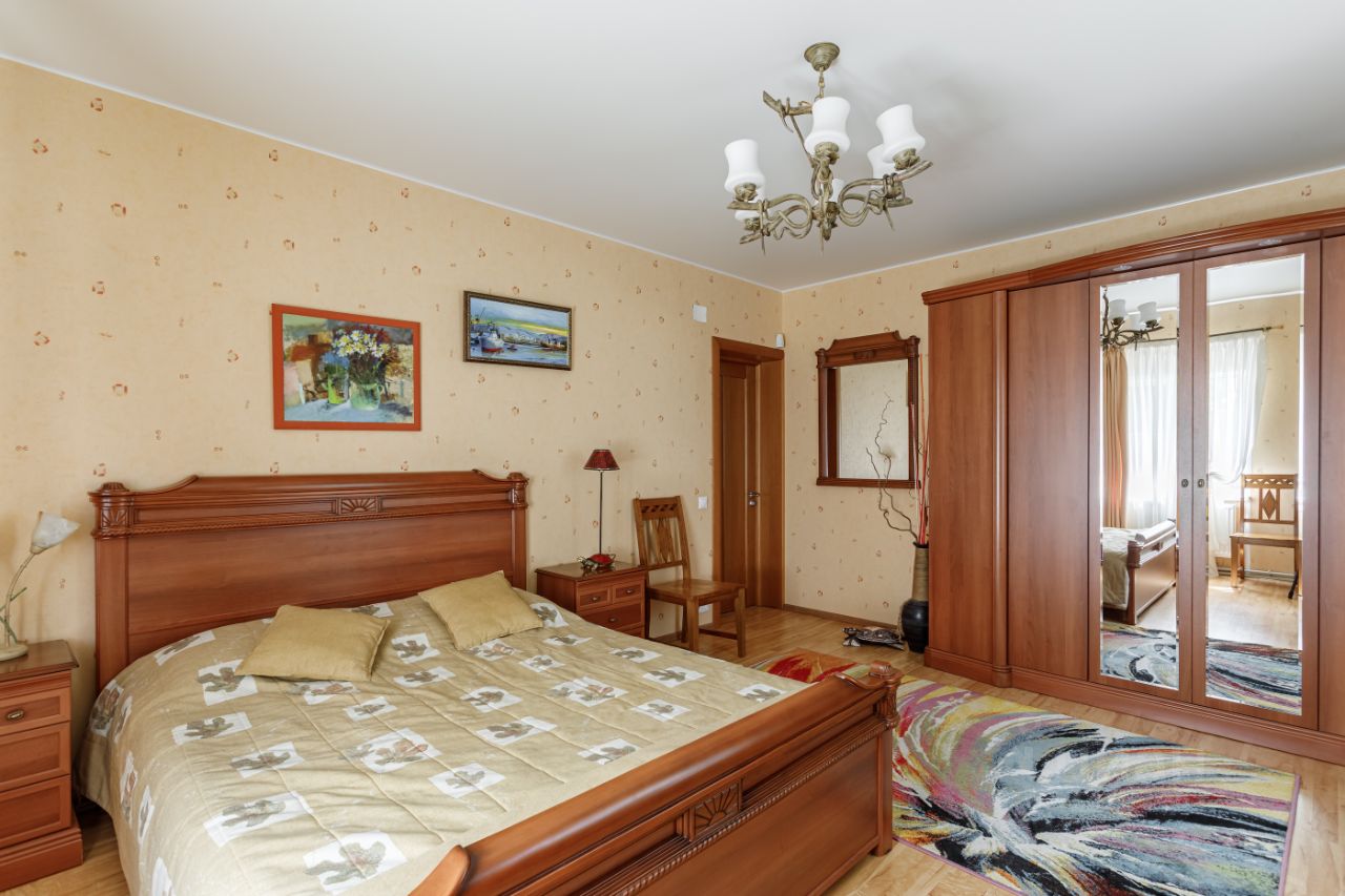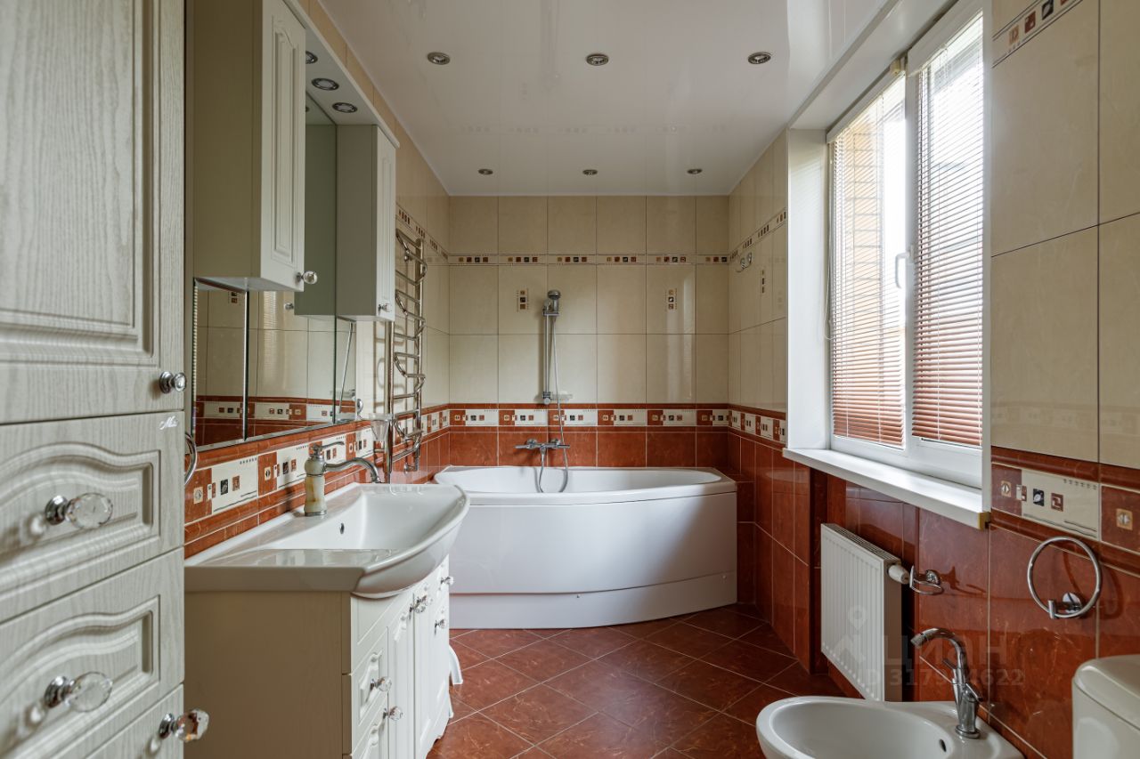 Вашему вниманию представляется полностью готовый дом общей площадью 370 кв.м., расположенный на благоустроенном участке 12 соток. Помимо основного дома на участке расположены баня (сруб осины) с верандой и гостевой бревенчатый дом площадью 60 кв.м. На участке выполнен ландшафтный дизайн, система дренажа, установлено декоративное освещение, дорожки вымощены брусчаткой. Участок и все строения зарегистрированы и имеют кадастровые номера. Дом построен из экологических и качественных материалов. Фундамент - монолитная плита, стены - брус 15 с утеплением и обложен кирпичом. Функциональная планировка позволяет жить в уюте и комфорте: Первый этаж: просторная кухня - столовая, гостиная с дровяным камином, уютный холл и сан/узел с ванной, Второй этаж: три спальни, сан/узел с ванной и кабинет с красивым балконом. Мансардный этаж: две спальни и уютный холл- гостиная. На минус первом этаже (подвал): котельная, гараж, уютная бильярдная, гостевой сан/узел, гардеробная- постирочная и кладовая.