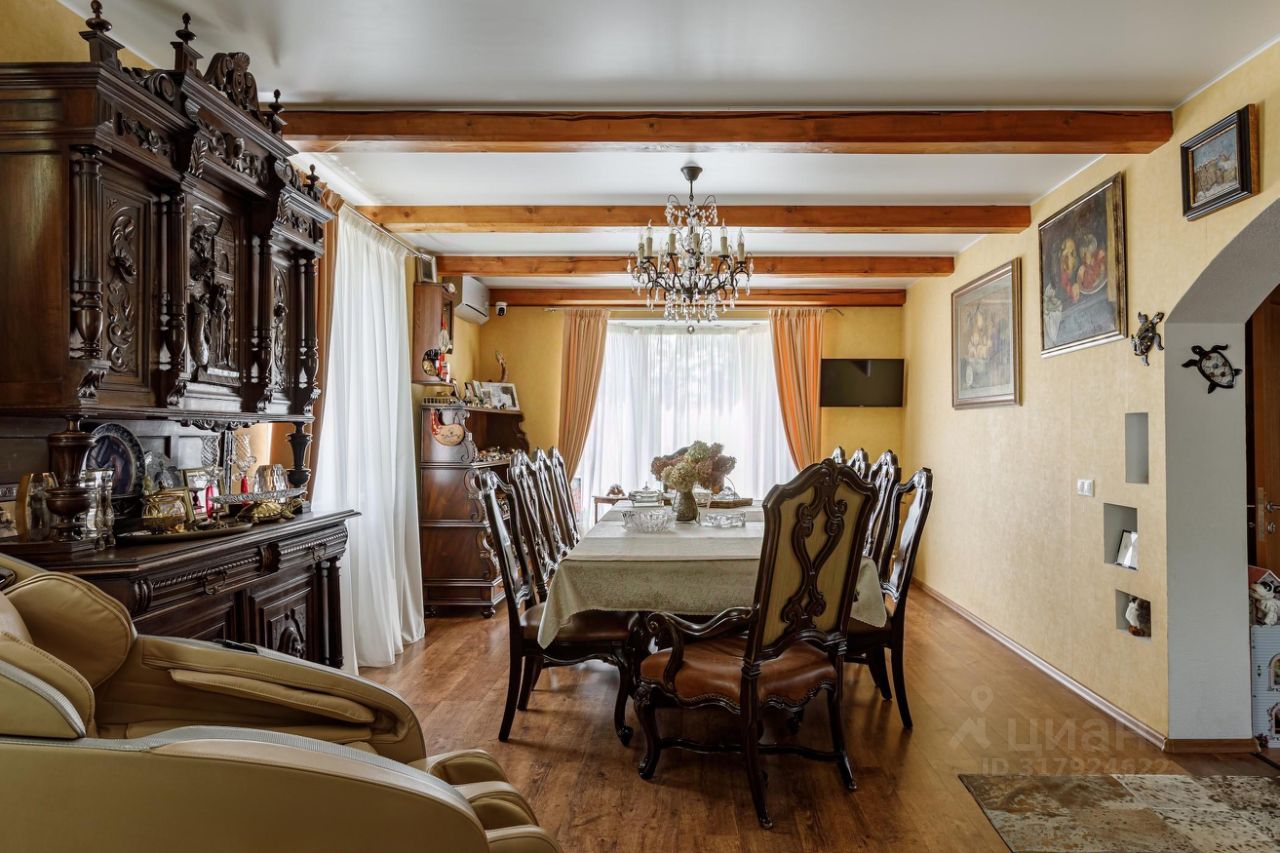 Вашему вниманию представляется полностью готовый дом общей площадью 370 кв.м., расположенный на благоустроенном участке 12 соток. Помимо основного дома на участке расположены баня (сруб осины) с верандой и гостевой бревенчатый дом площадью 60 кв.м. На участке выполнен ландшафтный дизайн, система дренажа, установлено декоративное освещение, дорожки вымощены брусчаткой. Участок и все строения зарегистрированы и имеют кадастровые номера. Дом построен из экологических и качественных материалов. Фундамент - монолитная плита, стены - брус 15 с утеплением и обложен кирпичом.