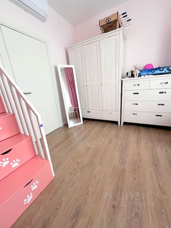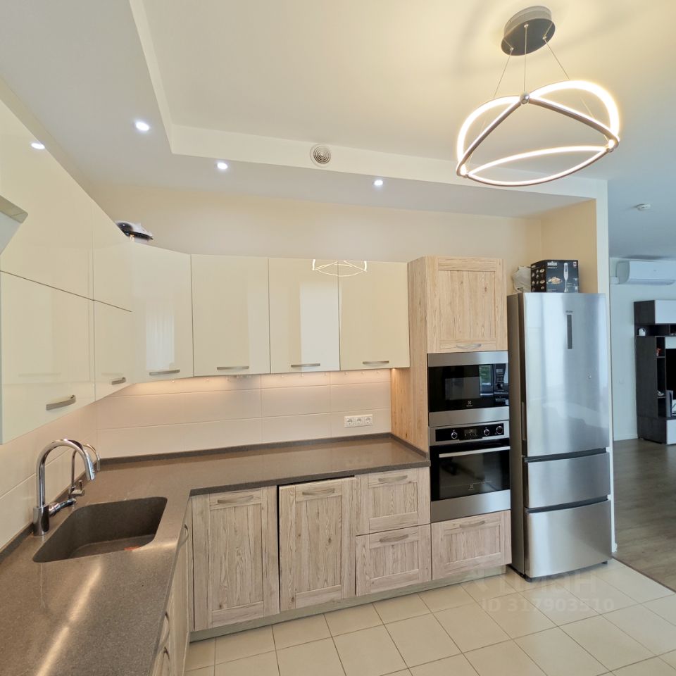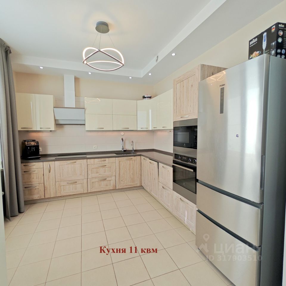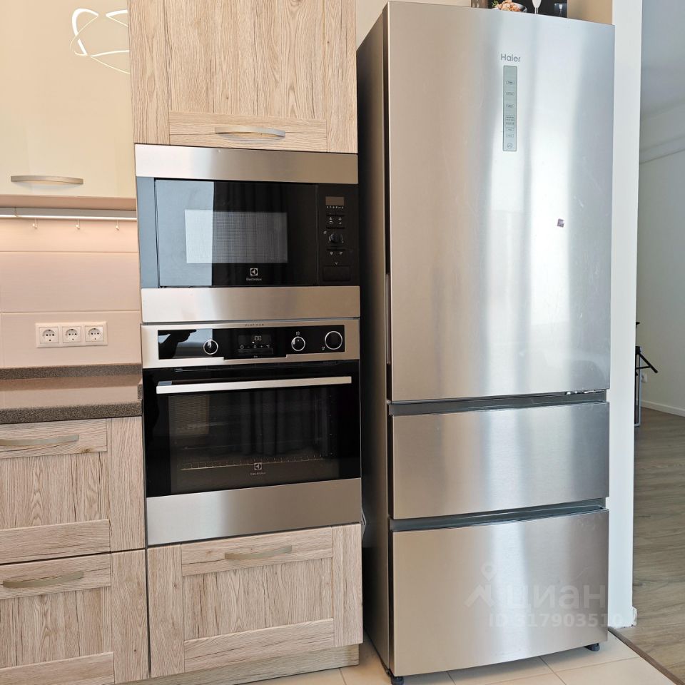 За объект принят Аванс ! Редкое предложение в ЖК - светлая 4-комн квартира с тремя отдельными спальнями, с просторной кухней и большой гостиной с обеденной зоной. Кухонный гарнитур со столешницей из камня укомплектован дорогой встроенной бытовой техникой Electrolux - посудомоечная машина, индукционная плита, духовой шкаф, микроволновая печь, вместительный холодильник HAIER. Мастер-спальня со своим санузлом. Второй санузел раздельный. Квартира светлая, вечером приятное закатное солнышко, виды из окна на лес и на красивый двор. Комфортный 3-тий этаж, только один сосед! Идеальный вариант для семьи с детьми. Очень хорошо расположен дом, до садика и школы 3 мин, дети могут ходить туда сами пешком. Вокруг дома уже все застроено, инфраструктура вся в наличии, красиво, зелено.
