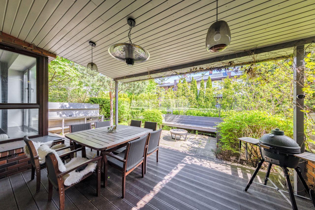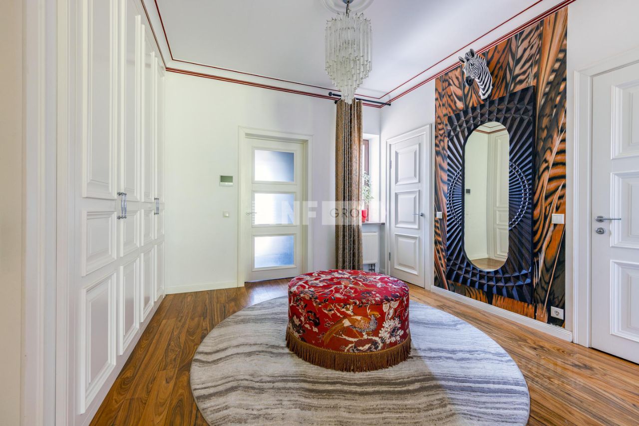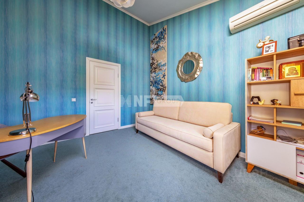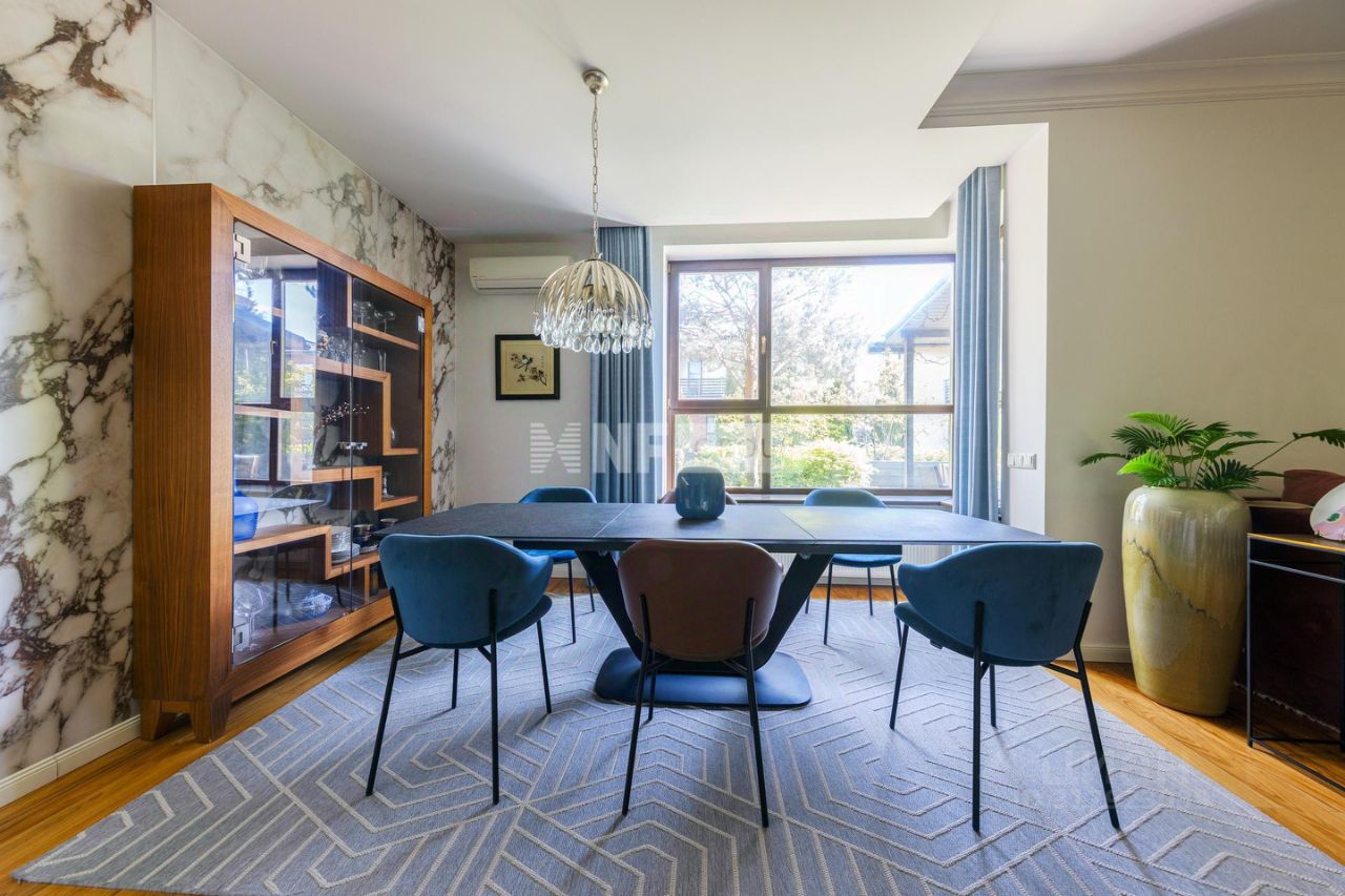 В цокольном этаже — личное пространство в духе private wellness: СПА-зона с сауной Harvia и душем, просторная гардеробная для сезонного хранения, постирочная с техникой Miele, а также универсальное помещение, которое легко превратить в спортивный зал, домашний кинотеатр или студию. Первый этаж — это открытое общее пространство с гостиной и кухней, выполненной по индивидуальному проекту. Немецкое оборудование Ligron, техника Siemens, ASKO, Liebherr, обеденная группа BoConcept, антикварные предметы мебели 1819 века, бронзовые люстры ручной работы и библиотека, созданная на заказ, формируют утонченный интерьер. На втором этаже — приватная зона. Мастер-спальня с ванной комнатой и гардеробной и отдельный блок для детей: две спальни, вместительная гардеробная, санузел. Мансарда — легкое, свободное пространство. Здесь легко представить себе детскую зону, студию или лаунж-гостиную для вечерних разговоров. Предусмотрен дополнительный санузел.